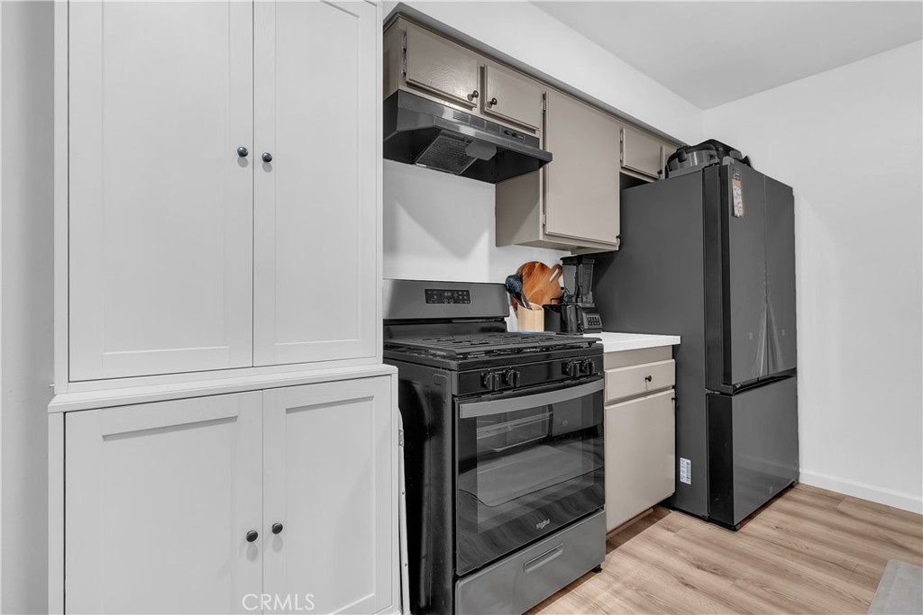Welcome to Benton Bay, a beautifully maintained, gated community surrounded by tranquil ponds, mature trees, and resort-style amenities. This upgraded 1-bedroom, 1-bath upstairs end-unit condo offers comfort, style, and convenience all in one inviting package. Step inside to a bright, open living space featuring laminate flooring installed just two years ago. The updated kitchen boasts modern cabinetry and sleek finishes, while the remodeled bathroom adds a touch of spa-like relaxation. Enjoy the convenience of an in-unit laundry closet and the comfort of a walk-in closet in the spacious primary bedroom. Relax on your private balcony overlooking the lush community landscaping, or take advantage of the outstanding amenities—including a sparkling pool, fitness center, tennis courts, and a dog park perfect for your four-legged friends. This home also includes one assigned carport plus plenty of guest parking for visitors. Ideally located near shopping, dining, and freeway access, Benton Bay offers a serene retreat with easy urban convenience. Perfect for first-time buyers, young professionals, or downsizers seeking a low-maintenance lifestyle, this move-in-ready home is a true gem in one of Norwalk’s most desirable communities.