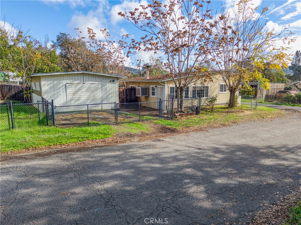 Affordable and cute 2 bedroom 1 bathroom home in Clearlake Oaks. Fully fenced yard with back yard fenced separately, private patio area. Large enclosed carport that holds 2 cars plus a good size storage shed. Bathroom features a jetted tub and tiled flooring .Front room features tiled entry, wood laminate flooring and a fireplace/wood stove, additional heat is a propane monitor heater located in kitchen area. Also built in bookshelf area in living room. Laundry room off kitchen. Ceiling fans throughout. Kitchen features lot's of cabinets, ceiling fan, tile counters, electric cook-top stove and dishwasher. Fresh interior paint throughout. Plenty of parking between the driveway (2 cars), carport (at least 1 car), and street parking as well. Walking distance to Elementary School. Be to I5 in about 45 minutes or HWY 101 45 minute estimate.