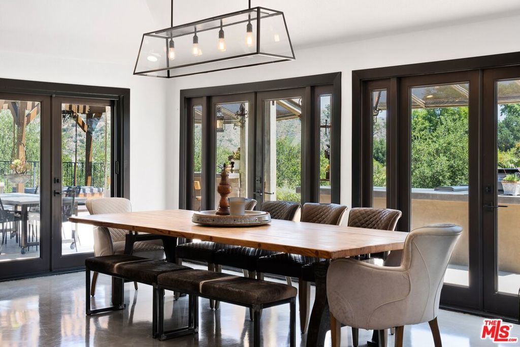 A rare sanctuary set amid Orange County's untouched beauty, this extraordinary estate spans 1.2 immaculate acres overlooking the rolling expanse of Santiago Oaks Regional Park and its surrounding mountain silhouettes. The property embodies a seamless dialogue between architecture and environment - an immersive retreat where serenity, design, and nature converge in perfect balance. The residence reveals itself through a sequence of warm, richly layered spaces that flow effortlessly within an open-concept layout. Expansive walls of glass dissolve the boundary between indoors and out, framing panoramic views of protected canyons and vast open space. At the center of the home, an artisan-crafted koi pond becomes a sculptural focal point, enhancing the sense of calm and connection to the landscape. The primary living areaskitchen, dining, and loungeare unified by an atmosphere of airiness and intention, allowing for both intimate living and elevated entertaining. The chef's kitchen is outfitted with quartz surfaces, state-of-the-art stainless appliances, a Thermador double oven and range, a built-in espresso system, and an expansive island that anchors the space with effortless sophistication. Each of the four bathrooms is conceived as a personal spa haven, showcasing bespoke fixtures, tactile materials, and a meticulous balance of beauty and usability.Outdoors, the grounds unfold like a private resort. A fully appointed alfresco kitchen and entertainment pavilion, personal vineyard, bocce court, and thoughtfully placed seating lounges encircle a pristine pool and spaeach vantage point curated to embrace the drama of the surrounding canyon. Multiple fireplaces and gathering areas extend the home's ambiance year-round, while an infrared sauna and outdoor shower elevate the sense of wellness. Additional features include a concrete tile roof, a fully owned solar system to be transferred to the new owner, and a whole-home water-softening system.