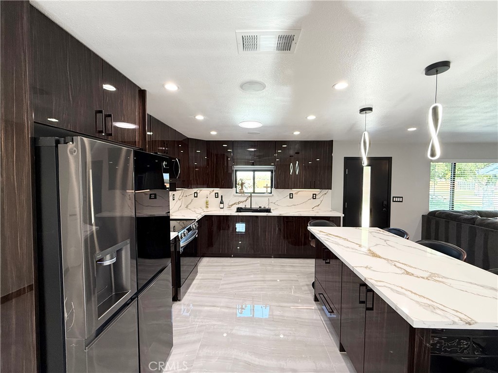 Stunning modern ranch on 7.1 acres, just 1 minute from Highway 152. This fully remodeled 1,535 sq. ft. home features 3 bedrooms, 2 bathrooms, and high-end finishes throughout. Complete top-to-bottom renovation includes new electrical, plumbing, insulation, drywall, stucco, Cool Roof (40-year), solar roof vents, modern black windows, tile flooring, sound system, surveillance cameras, garage tile flooring, and Tesla charger. Beautiful custom kitchen featuring new cabinets, island, skylights, premium appliances, and a Lefton 33x22 Waterfall LED sink with digital temperature display. Both bathrooms have been fully redesigned with modern finishes and skylights. Additional upgrades include new front iron fencing, 80% new wood perimeter fencing, new doors, new garage doors with remote controls, and a full laundry room equipped with a washer and dryer. Perfect for anyone seeking modern luxury with open land for farming, livestock, trucks, or a peaceful rural lifestyle.