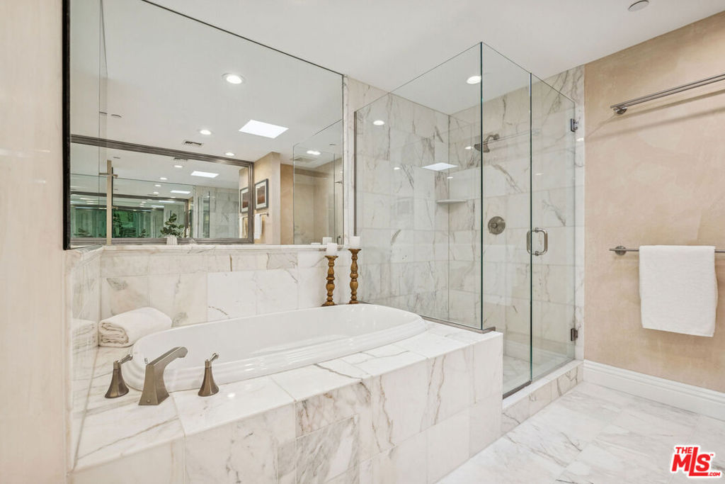 Long-awaited 2 Bedroom - 2.5 Bathroom PENTHOUSE offering exceptional privacy and refined elegance in the heart of Beverly Hills, complete with 24/H concierge service.. Bathed in natural light from every angle, this home features an open floor plan, high ceilings, skylight windows, cosy fireplace and city views. The living room is highlighted by two sets of French doors flooding the space with sunlight and an open patio perfect for savoring your morning tea or relishing an evening glass of wine. The adjoining kitchen is a chef's dream, equipped with deluxe Viking appliances, beautiful countertops and multiple cabinets seamlessly connecting to the dining area perfect for gathering. Generously sized master bedroom complete with a custom walk-in wardrobe and en-suite bathroom with skylight window, separate tub and shower, along with a dual sink vanity featuring a spa-like design. The Guest bedroom is equally impressive, surrounding by palm trees with multiple windows that invite in plenty of light and a chic glass wardrobe that adds a touch of modernity. Convenience meets style with an in-unit laundry room and guest powder room. Indulge in the array of amenities that Maison Reeves Condominiums has to offer, including a large fitness room, sauna, 24-hour Concierge service and 3 side by side parking spaces, a private storage room and immaculately maintained spaces. Located a stones throw to the renowned shopping on Rodeo Dr, fine dining, and incredible entertainment options.