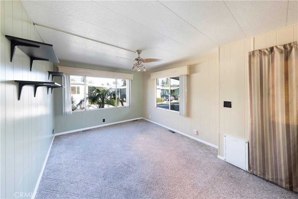 This charming 3-bedroom, 2-bath home has been beautifully upgraded and is now available for sale. Priced to sell quickly! Inside Photos will be coming soon and will update the MLS. Keep this property in mind as you explore your options. The home features numerous upgrades, including crown molding and a coffered ceiling in the modernized kitchen, which is filled with abundant natural light. Both bathrooms have been tastefully renovated. The living space, spanning approximately 1,440 sq. ft., includes a built-in china cabinet, a dining room, and a master bedroom at the rear of the home, complete with a private master bath. Additionally, the guest bedroom boasts its own upgraded private bathroom. Enjoy comfort with central air conditioning, a large covered deck perfect for gatherings, a fenced yard for privacy, and a spacious, extra-wide carport that provides ample parking. The community where this home is located is a friendly, family-oriented, and pet-friendly park, ideal for raising children, walking pets, and enjoying various amenities. Residents have access to a fully equipped gym right within the park. The rent-controlled space rent is an affordable $1,092 per month in this well-managed community. Throughout the year, the park hosts a variety of activities and events for residents to enjoy. Conveniently situated within walking distance of the historic city of San Juan Capistrano, the nearby train station provides easy access to beautiful beaches like San Clemente, Oceanside, and San Diego. The new local marketplace is a wonderful spot to explore shops, dining options, and more! Plus, the beautiful sands of Doheny Beach are just about 2 miles away, easily accessible via the bike trail at the rear of the community.