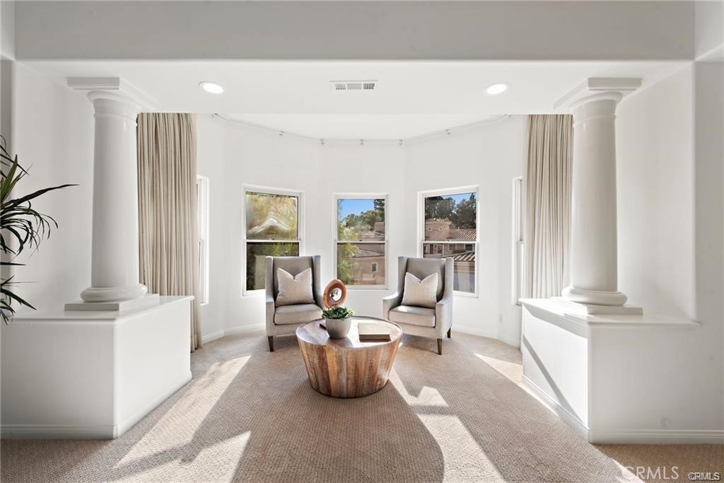Rare single-level villa in the guard-gated community of Marbella Country Club. One of only twelve homes of its kind, this 2,700 sq. ft. residence offers soaring ceilings, abundant natural light, and an open layout. Recently updated with new paint, brand-new windows, LED lighting, plank flooring, and designer carpet. The spacious living room features a central fireplace and opens to a bright reading alcove and dining area. The large kitchen includes a center island, breakfast nook, counter seating, stainless steel KitchenAid appliances, and excellent storage. The expansive primary suite offers a sitting area with fireplace, private deck, and serene golf course/hillside views, plus a spacious bath with soaking tub, step-in shower, dual vanities, and oversized walk-in closet. Additional features include a guest suite with ensuite bath, den/office, inside laundry, and an attached two-car garage with direct access. Newer furnace, AC condenser, and water heater. Residents may join Marbella Golf & Tennis Country Club for access to golf, tennis, fitness, pool, and dining. Conveniently located near downtown San Juan Capistrano, the new River Street district, dining, shopping, and trails.