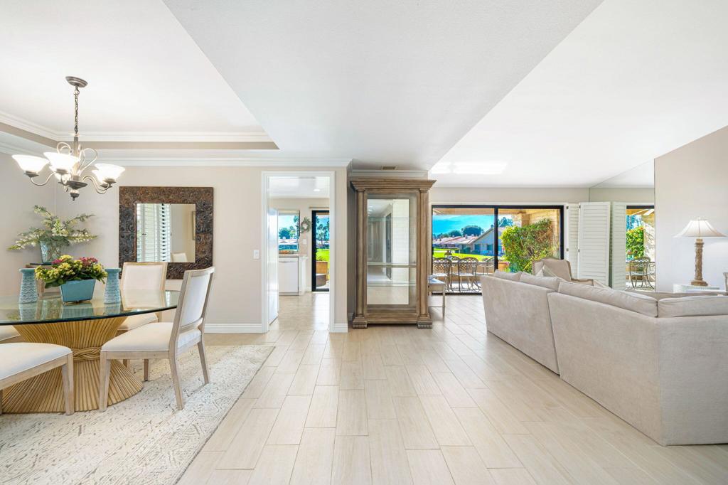 Leased Jan. - March 2026. Available April $7000, May & June $5000 per month. Spectacular South Mountain, Lake and Fairway Views from this charming 3 Bedroom - 3 Bath home located behind the gates of Chaparral Country Club. The bright, open floor plan is spacious with lots of natural light from the large windows, Atrium and Skylight. This lovely appointed home offers 3 bedrooms each with their own en-suite bath and TV's in each room. Upgrades include Tile flooring, shutters, baseboards, ceiling fans and crown molding. Living Room has a Flat Screen TV, full brick walled Fireplace and a slider that leads out to the patio and views looking out across the green Fairway. A bright white Chef's Kitchen has a Breakfast Nook and seating for 4. Separate Dining area for 6. The spacious Primary Suite has a King-size bed, TV and Walk-in closet and Bath with Separate Shower. Guest Bedrooms one has a Queen-size bed and one King-size bed. Separate Laundry room. Step out to the covered Patio with your private BBQ; enjoy your morning coffee or evening cocktails as you marvel at the expansive views of the Southern Mountains beyond. Chaparral Country Cub offers Pickleball, Tennis, Fitness Center plus main Clubhouse. Basic Cable TV, Internet included with Lease. Centrally located in Palm Desert and close to renowned El Paseo's upscale shopping/restaurants, McCallum Theater and more.