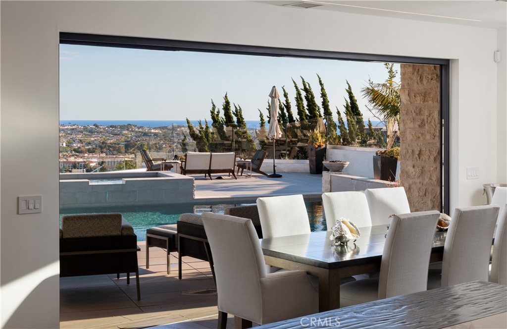 Experience sweeping panoramic ocean, mountain and golf course views from this fully remodeled, single-level contemporary home in the coveted Monarch Bay Terrace of Dana Point. Set on an expansive 25,840 sq ft lot, the property captures amazing sweeping coastline views from San Diego to Dana Point, along with dramatic mountain backdrops stretching to Saddleback Mountain. Nearly every major room is oriented to these rare, wide-angle sight lines, creating a coastal living experience that feels open, elevated, and endlessly scenic. Offering approximately 5,000 sq ft of refined living space, the home features four spacious en-suite bedrooms and 5.5 bathrooms. Reclaimed Hickory floors, three fireplaces, and seamless pocketing doors blur the line between indoors and out, welcoming ocean breezes and natural light throughout. The primary suite boasts some of the property’s most impressive vistas—wake up to morning ocean views from bed, unwind in the spa-inspired bathroom with steam shower, and enjoy a private outdoor shower and patio overlooking the coastline. Designed for both daily living and effortless entertaining, the chef’s kitchen is equipped with Sub-Zero refrigeration, a Miele built-in coffee maker, two dishwashers, a Wolf double oven and 6-burner cooktop, dual islands, and abundant prep and storage space. Additional interior amenities include a temperature-controlled wine cellar, indoor dog wash, full smart-home system, integrated security cameras, and an oversized three-car garage with dual EV chargers. The resort-style grounds maximize the home’s extraordinary exposures. A heated pool and spa, two ocean-view fire-pit lounges, an outdoor dining courtyard with fireplace and heaters, a built-in BBQ center, and a separate pool bathroom with shower all come together to frame the coastline and mountains from sunrise to sunset. Every outdoor space is crafted to showcase the home’s breathtaking surroundings. Located just minutes from world-class beaches, five-star resorts, golf, dining, and the revitalized Dana Point Harbor, this fully furnished residence offers an unparalleled blend of luxury, comfort, and iconic Southern California scenery. Pets considered upon submission.