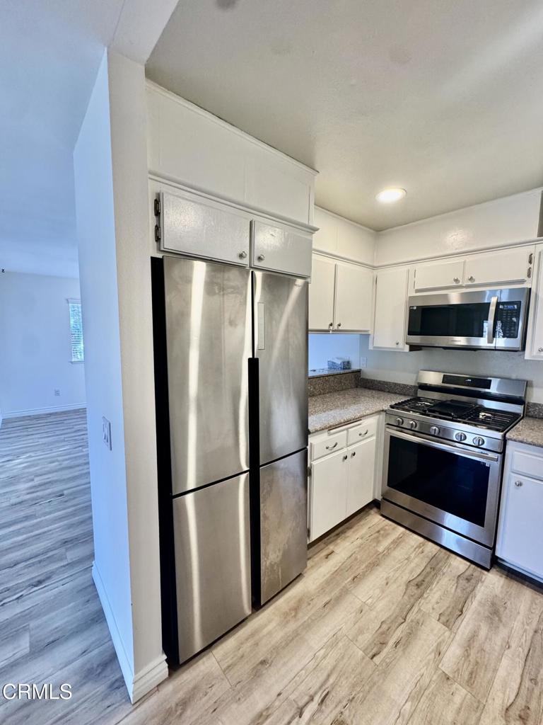 Welcome home to this spacious and well designed condominium with two large private patios featuring wonderful tree top views! This 2 bedroom (dual master suites), 2 bathroom 2nd floor unit in Moorpark's convenient Varsity Park Village is close to Moorpark College, freeways, shopping, restaurants, Simi Valley and other East Ventura County communities. Amenities include central air and heat, hardwood-like floors, stainless steel appliances, granite countertops, updated bathrooms, ample storage, washer, dryer, and attached direct access 2 car garage with side by side washer and dryer hookups. HOA includes meticulously maintained landscaping, community pool and clubhouse, water, sewer and trash. This desirable unit is situated in the Moorpark award winning school district, and provides easy access wonderful hiking trails, parks and Moorpark College - all at an affordable price!!!