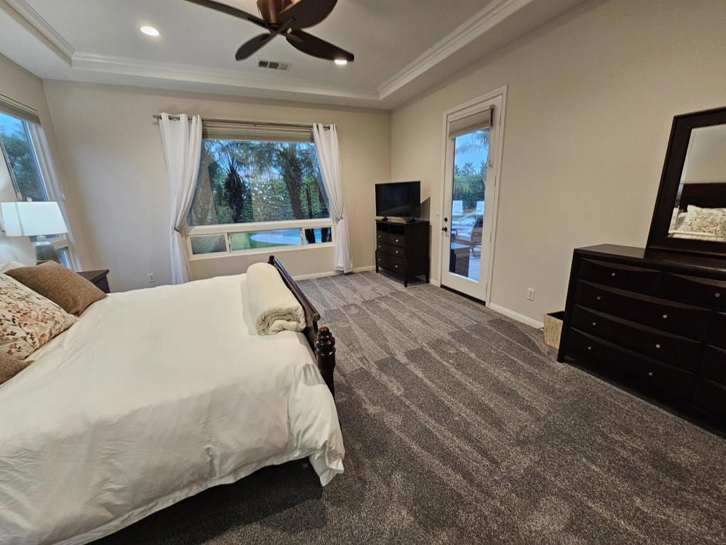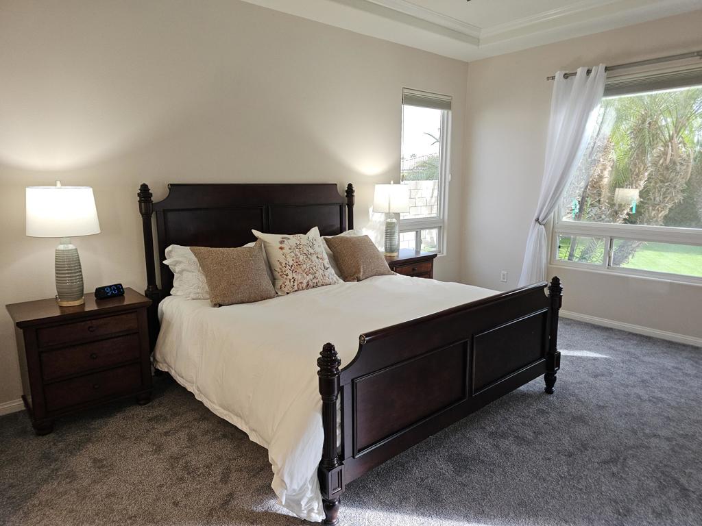 Experience luxury and comfort in this stunning seasonal property located in a gated community in La Quinta. Spanning 3,225 square feet, this beautiful home features five bedrooms plus a den, and four and a half well-appointed bathrooms. the property includes formal living and dining rooms, a large kitchen with elegant granite countertops, and a beautiful backyard complete with a salt water pool, spa, built-in bar-be-que., and mist system to keep you cool. Additional amenities include a two-car garage, air conditioning, brand-new carpeting, and the home is fully furnished and turnkey. making it perfect for seasonal stays. Ideally situated near Coachella and Stagecoach festivals, and close to the Polo fields, this property offers both convenience and luxury in a prime location. Call for more details .