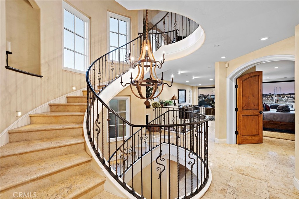 Poised within an elite location on the prestigious Balboa Peninsula is a grand estate perfectly situated on the bay. The design of the estate exudes luxury as you are greeted by the Tuscan inspired architecture. An immense 5,000 square feet, each level is thoughtfully designed and flows seamlessly from room to room. Main level holds towering glass doors that open directly to the waterfront and enhances the entire indoor/outdoor flow. A gorgeous spiral staircase takes you from floor to floor while the private elevator adds additional convenience. This property offers direct access to harbor recreation and is walking distance from shopping and dining. Private boat slip allows for direct entry onto the water from home while the private waterfront is perfect for unwinding. This estate brings in a resort like comfort, all whilst boasting an old world charm.