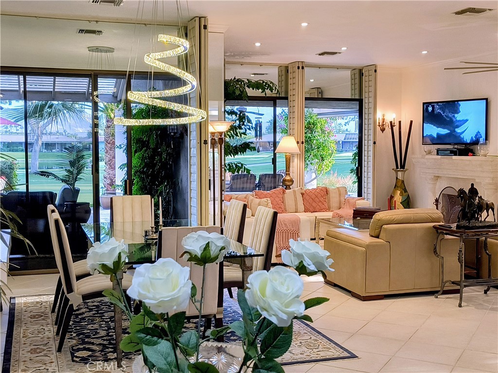 Discover Ultimate Desert Living at the Springs Country Club. most sought-after Residential Community in Rancho Mirage. IF LOCATION AND VIEWS ARE IMPORTANT TO YOU LOOK NO FURTHER. This Home is on the NEWLY DESIGNED Spring Country Club Golf Course. The Springs is more than a community-- it's a lifestyle. amenities rival those offered at the best Private Clubs. Enjoy State-of-the-art Fitness Center, golf, tennis, pickleball, bocce ball, and a vibrant array of social clubs’ activities including art, wine, books, card games, and an engaging speaker series. This Phenomenal Location faces Unparalleled facing South with sweeping breathtaking panoramic view of the majestic Santa Rosa and San Jacinto Mountains, elevated about 6 ft overlooking the 11th fairway two picturesque Lakes, 11th ,12th and 15th greens. This Oasis boasts 26 mature palms, and pine trees, 3 patios and walkways all covered in Arizona Flagstone. Entry & Front patio has a 7ft wall waterfall and garden fountain. Backyard has outdoor Mist Cooling System, Ceiling Fans, Beautifully Landscaping W lighting. And Breath-Taking views. This Home was Remodel in 2024. This upgraded 3-bedroom, 3-bathroom home features en-suite bathrooms for each bedroom, offering privacy and comfort for you and your guests. A sophisticated and well-equipped kitchen with custom cabinetry, state-of-the-art Chef’s Kitchen with all stainless appliances, Quartz counter tops, and Reverse Osmosis water system open concept kitchen flows seamlessly into the spacious great room, you have showcasing expansive beautiful views from every room in the home. Throughout the home you have LED lighting, Solar Tube lighting, large Sky Lights, Ceiling Fans, Surround music inside and outside. Gated Community with 24/7 monitored Security and patrols, Two sparkling salt water pools with spa pools steps from either side of the home, Located directly across from the Eisenhower Medical Center which provides peace of mind, offering top-tier healthcare, and just minutes from The River shopping and entertainment center- featuring dining, boutique shopping and both shopping/dining at the famous El Paseo Drive in Palm Desert Also the Palm Springs International Airport.