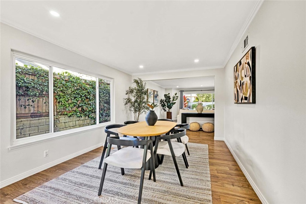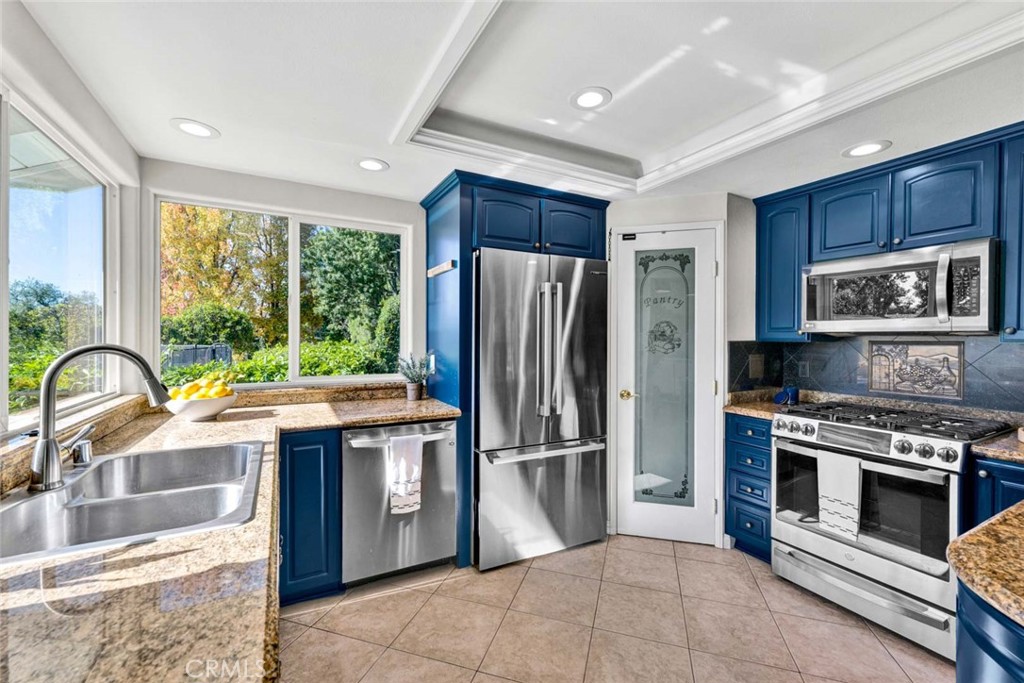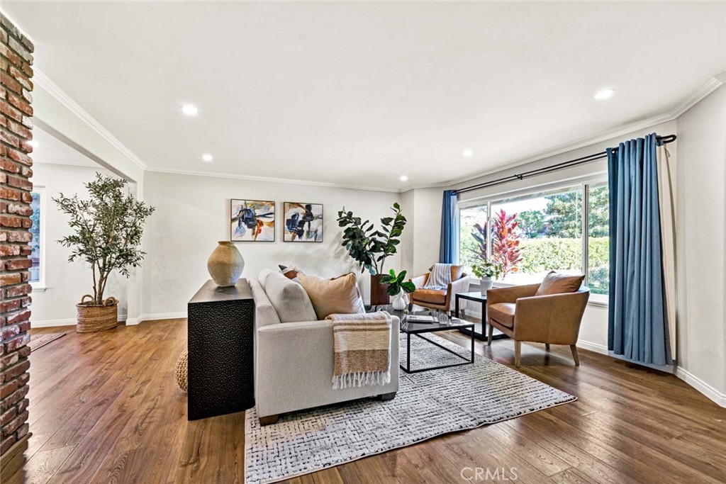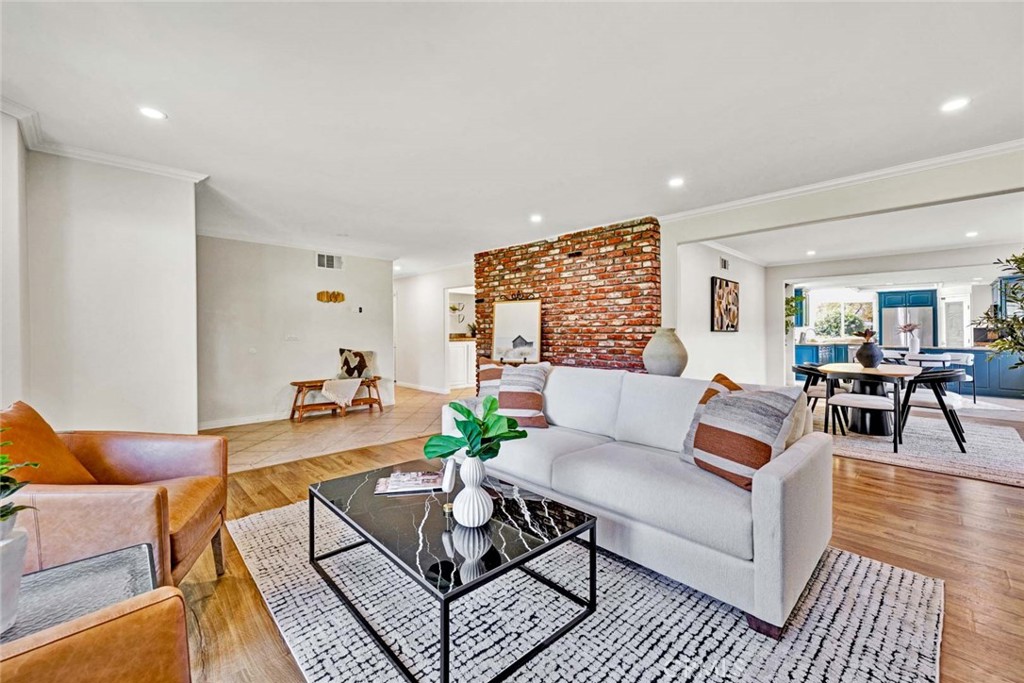 This distinguished single-story residence at 9531 Lemon Street epitomizes Villa Park living at its finest. Situated in the prestigious northeast quadrant on an expansive 26,095-square-foot parcel, the property presents exceptional opportunities for enhancement, whether one envisions a sports court or an accessory dwelling unit. The thoughtfully designed floor plan encompasses three bedrooms and a dedicated office—readily convertible to a fourth bedroom—all on a single level. Architectural details include a brick-capped perimeter wall, double-door entry with decorative glazing, and an abundance of natural light throughout the interconnected living and dining spaces. The well-appointed kitchen features professional-grade appliances and seamless indoor-outdoor connectivity. The primary suite provides a private sanctuary with direct patio access, generous walk-in closet, and luxuriously appointed en-suite bath complete with soaking tub and rain shower. The meticulously maintained grounds showcase a resort-style pool and spa within secure fencing, fruit orchard complemented by mature landscaping and substantial undeveloped space. A three-car garage with electric door openers completes this exceptional offering in one of Orange County's most coveted communities.