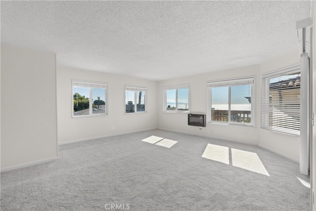 A day (and every day) at the beach is a prime offering of this charming 2-BR / 2-BA + bonus room home. The enclosed front courtyard welcomes you into this delightful home with a spacious living/dining room that is framed with light-filled windows and features rich hardwood flooring plus a distinctive fireplace & mantle surrounded by attractive display shelves and storage cabinets. The open dining area connects the gleaming kitchen with a pass-through + dining/serving counter. The large private main suite presents sunrise-to-sunset ocean views, extending to the adjoining balcony. The suite provides a deep walk-in closet, tiled bath with dressing area + a versatile additional room with sink and cabinets for hobbies, office, and storage. This main suite also has the flexibility of an additional private, separate access. The first-floor bedroom is served by a tiled hall bath, including generous storage cabinets. The single garage adjoins an adaptable bonus room suitable as a gym, office or, possibly a second garage. Just a short stroll to the beach, this home enjoys an idyllic, coveted location. Make this home your own and enjoy the proximity to acclaimed restaurants and stores.