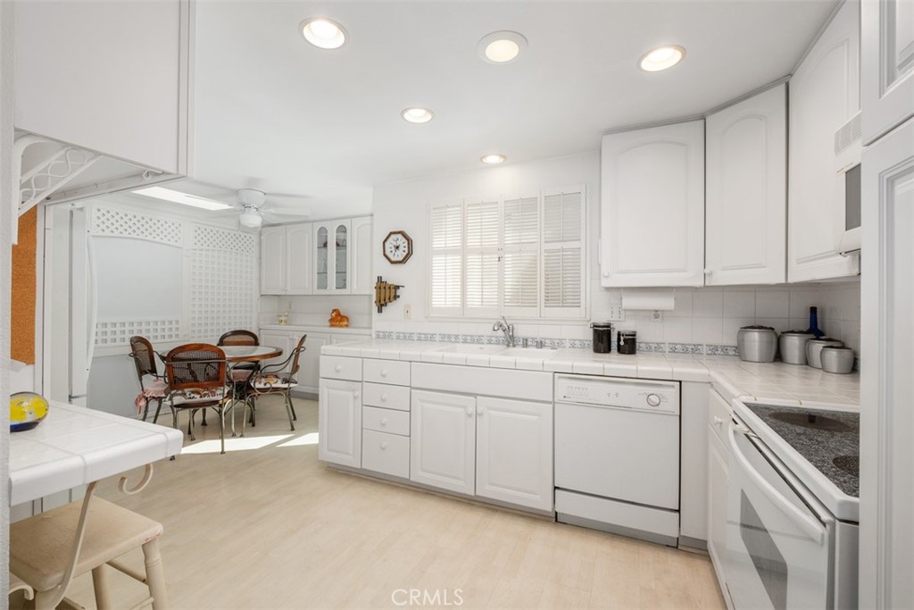 Enjoy living in beautiful Laguna Woods Village in this spacious 3 bedroom, 2 bath, top floor, end unit home with golf course views! Enjoy the views year round from the spacious Balcony in this very popular Garden Villa located in a prime golf territory. The building is located between two golf courses. Home interior has just been painted. Enter through the wrought iron entry gate and double doors and step into the large living room. No neighbors above. The large Primary Bedroom has gorgeous golf views and ensuite bathroom featuring Roman style soaking tub and gold fixtures. The subterranean parking below building has elevator access and additional storage space & cabinets. Light and bright kitchen has skylight and abundant windows. HOA recently installed a new water heater. The subterranean parking below building has elevator access and additional storage space & cabinets. This 1600 + square foot Home is ready for you to update and make this your showplace! Beautiful gate-guarded senior community (www.lagunawoodsvillage.com) is close to freeways, beaches, shopping & entertainment. Enjoy 7 club houses, 5 swimming pools, 27-hole championship course, 9-hole par executive golf course, tennis courts, pickleball, lawn bowling greens, shuffleboard courts, craft & hobby workshops, garden centers, game rooms, billiard rooms, gym, horse stables, library, stunning new performing arts center, free local transportation & 200+ social clubs to join. Laguna Woods Village is located 15 minutes from Laguna Beach.