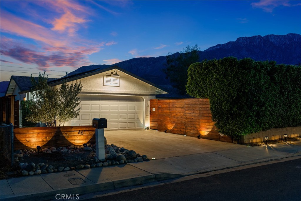 Experience modern comfort and thoughtful upgrades in this turnkey home located in Desert Highland Gateway Estates. Step behind the front gate and into a classic Palm Springs stunner where clean lines, warm light, and an inviting flow define this single-story retreat just minutes from Downtown. A spacious, fully fenced yard creates a private, modernist first impression. As you approach the black window-pane door stands like a modern art piece simple, bold, and beautiful guiding you into the stylish entryway. Offering 4 bedrooms and 2 baths across 1,284 sq ft, this home sits on a 7,840 sq ft lot with mountain views and a direct-access 2-car garage. Inside, warm faux tiled floors and soft natural light lead to an open living space where the kitchen, dining, and lounge areas blend effortlessly. Quartz countertops and stainless-steel appliances including a polished 5-burner stove with a minimalist wall-mounted range hood set the tone for modern Palm Springs living. A chic dining bar with dual wine refrigerators adds a touch of retro sparkle. Inside, the four bedrooms and two refreshed bathrooms feature clean subway tile, modern fixtures, and a walk-in rainfall shower for a bright, chic interior. The primary room features updated bathroom with a stylish walk-in shower. Sliding doors open to the backyard, creating that iconic indoor-outdoor connection. The entertainer’s backyard feels like a vintage desert hideaway with a shaded pergola, spa, and relaxed lounge zones. Enjoy a beautifully crafted custom BBQ for effortless, year-round entertaining, perfect for gatherings, dinners under string lights, or simply taking in views of the Aerial Tramway. The front yard is also pre-verified by the City for a pool permit. The home includes smart upgrades such as a 3.6 kW solar system with 10 Trina panels offsetting about 60% of annual electricity use, paired with an LG Chem back-up battery. A commercial-grade Lennox AC system ensures pristine climate control, while the Life Source whole-house filtration system provides purified water throughout. Includes Brinks security system. Located minutes from Downtown you’re surrounded by retro boutiques, iconic dining, art galleries, design shops, and nighttime glam. Minutes from the Palm Springs Aerial Tramway offering a breathtaking cinematic mountain views. Short drive to the Coachella Festival, this home shines as a stylish primary residence, a chic desert escape, or a high-demand Airbnb/STR investment. No HOA or Mello.