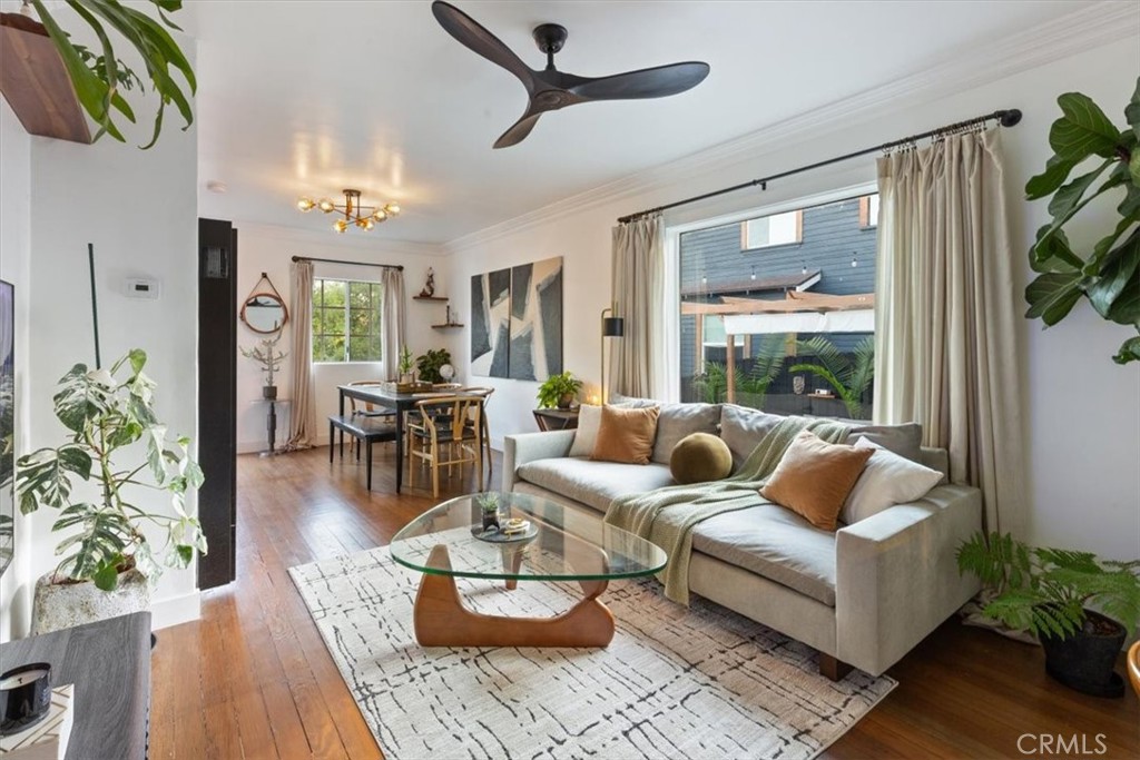 NEW PRICE !!! Perched atop a gentle hillside in Silverlake, 2207–2209 Apex Ave captures the essence of California living where historic charm meets modern design. Reimagined with a fresh architectural perspective, this dual-residence estate offers a rare balance of artistry, comfort, and flexibility in one of Los Angeles’s most sought-after neighborhoods. Behind a private gated entry, the residence unfolds into two harmonious homes surrounded by lush greenery, curved pathways, and thoughtfully designed outdoor spaces. The crisp white exterior, accented by black trim and warm amber wood, sets a timeless tone that continues throughout, as every corner invites connection to nature and the laid-back sophistication that defines Silver Lake living. Lush landscaping with intimate garden nooks creates great areas for morning coffee or evening wine, while multiple outdoor areas including a cowboy pool, fire pit, pergolas, and a charming greenhouse offer inviting spaces for relaxation and entertaining. From sun-dappled afternoons to evenings beneath the stars with views of the downtown skyline, the home is a private oasis above the city. Natural light floods large windows and glass doors, blending indoor and outdoor spaces seamlessly. The home has airy living areas where mid-century influences meet a warm California coastal aesthetic. Reclaimed original hardwood floors lend authenticity, grounding the modern updates with a sense of timeless character, while curated fixtures and natural hues create a soothing, artful ambiance. The kitchen features quartz countertops, custom fixtures, and stainless steel appliances, making the space ideal for cooking and gathering. The bathroom balances the home’s natural palette with refined boutique-style details that evoke the calm of a modern retreat. The main home includes two bedrooms and one bathroom, along with a bay window looking out to the outdoor patio. Downstairs, 2209 offers a remodeled kitchen, bathroom, and private front yard. With its own entrance, the studio mirrors the thoughtful craftsmanship of the home, offering charm without sacrificing value or privacy, ideal for extended family, guests or rental income. Minutes from Sunset Junction, residents enjoy effortless access to Silverlake’s beloved cafés, boutiques, and dining scene. More than a home, this is a private hillside sanctuary that celebrates character, creativity, and connection, a true reflection of Silverlake’s soul: artistic, inspired, and timeless.