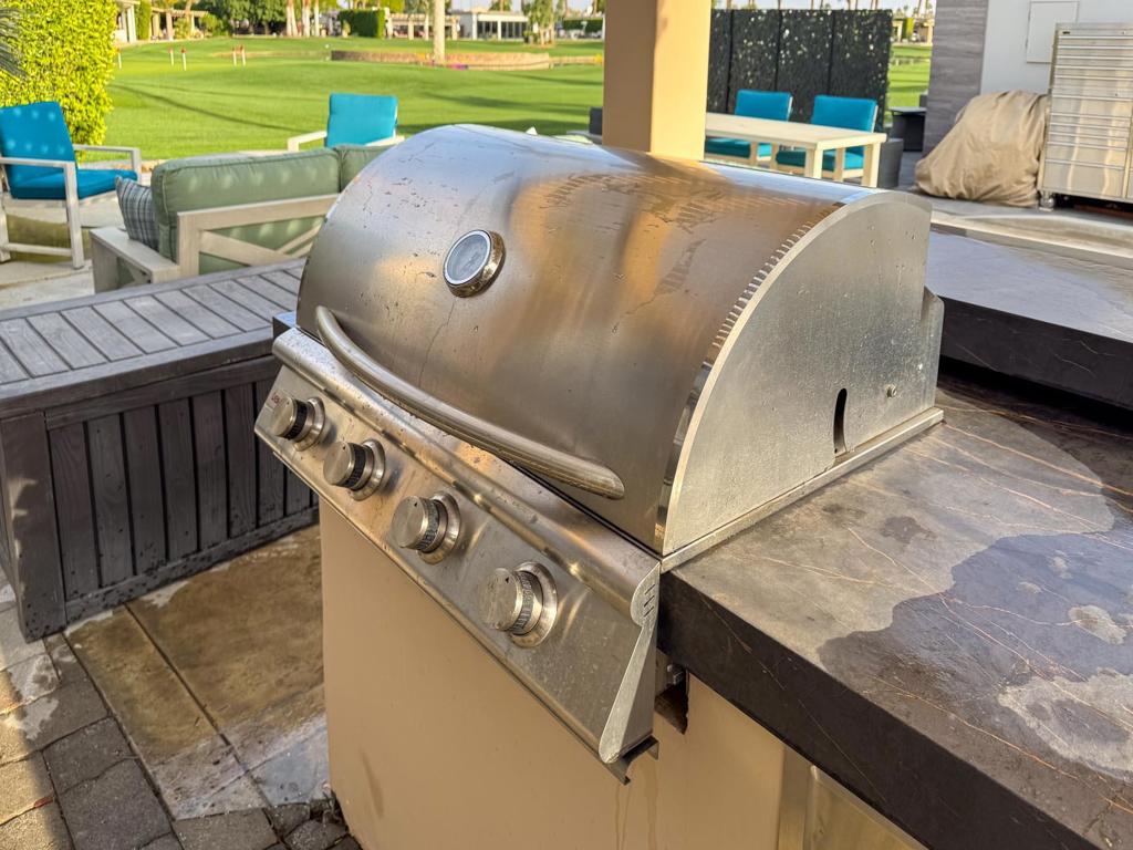 Outdoor Resort Indio is a Class A Motorcoach resort. This is an RV lot. A serene pergola lot with stunning golf course views, this prime property offers the perfect blend of convenience and luxury RV living, just steps from the clubhouse, resort amenities, and the second putting green. Designed for both entertaining and relaxation, the lot features a spacious outdoor kitchen with a built-in bar, equipped with a BBQ, dishwasher, refrigerator, sink, hot water, and an InSinkErator for added convenience. Enjoy breathtaking views in both directions while unwinding in the quiet, outdoor living space, perfectly furnished with brand-new Somerset furniture featuring Sunbrella fabrics.This furnished lot includes mid-lot hookups and offers potential extra property behind the hedge and to the side. All appliances are in excellent working order, making this an effortless move-in-ready opportunity. Whether you're entertaining guests at the bar, enjoying a sunset view, or stepping onto the putting green for a quick round, this luxury lot delivers the ultimate resort experience.