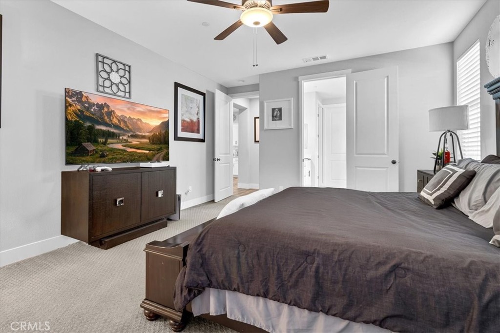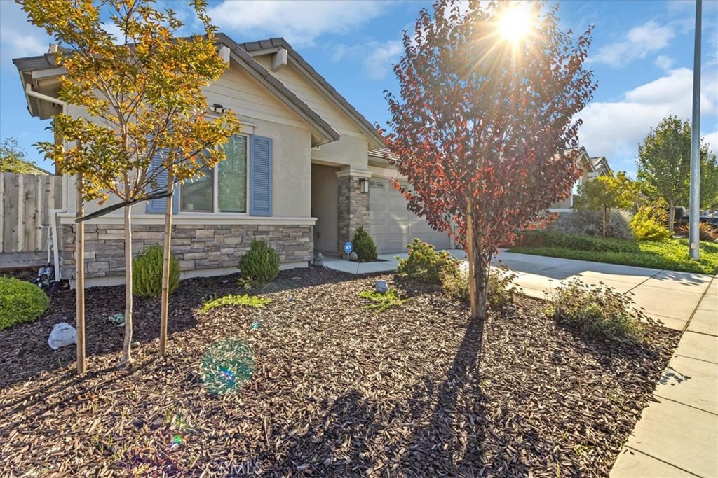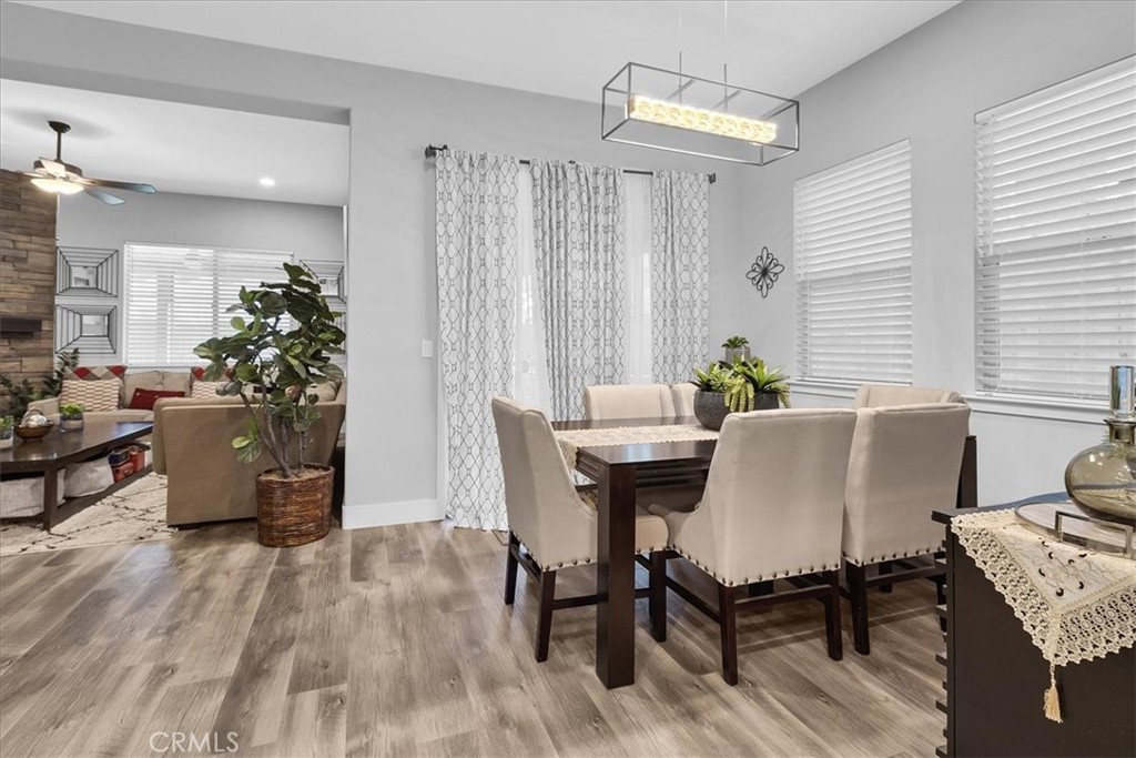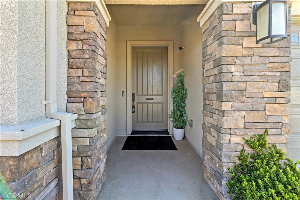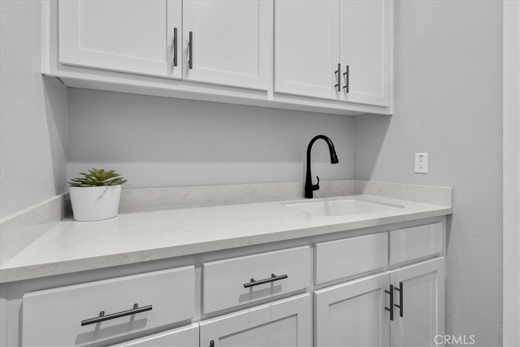This completely upgraded single-story home offers modern style, thoughtful design, and an entertainer’s dream backyard. The open-concept living area features a spacious great room with abundant natural light, LVP flooring, and a seamless flow into the gourmet kitchen. The kitchen boasts white shaker cabinets, sleek quartz countertops, stainless steel appliances, a subway tile backsplash, and an oversized island with bar seating—perfect for hosting and everyday living. Just off the side of the kitchen, you'll find a dedicated laundry room offering added convenience, extra storage, and easy access without disrupting the home's main living spaces. The luxurious primary suite includes a spa-inspired bathroom with a relaxing soaking tub, a spacious walk-in shower, and walk-in closet. Two additional bedrooms provide comfort and flexibility, ideal for family, guests, or a home office. Step outside to your newly designed backyard oasis, complete with a full-length patio awning, roll-down privacy shades, low-maintenance turf, and an impressive outdoor kitchen setup, offering multiple built-in stainless steel appliances and extensive counter space. Whether relaxing or entertaining, this space is built to enjoy year-round. Additional features include upgraded lighting, custom window treatments, ample storage, and a clean, modern aesthetic throughout. Move-in ready and truly turnkey—this home combines comfort, luxury, and convenience in every detail. *Solar panels are leased, 12 panels* @ $97.73 per month