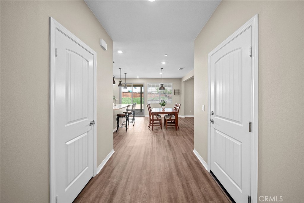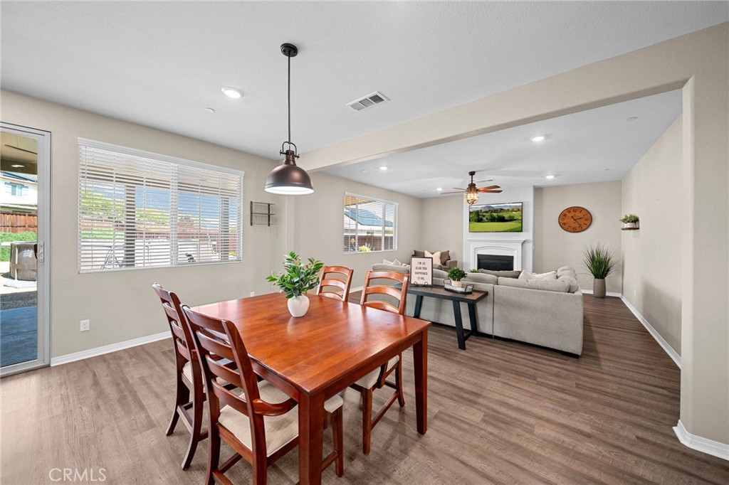 Welcome to your dream home in the prestigious Heritage Lake community of Menifee! Tucked away at the end of a peaceful cul-de-sac, this beautifully upgraded home offers one of the largest lots in the neighborhood, providing exceptional space, privacy, and versatility. Upon entering, you are greeted by a grand formal entry with soaring two-story ceilings and an abundance of natural light. The open-concept floor plan creates a warm and inviting atmosphere that flows seamlessly throughout the home. At the heart of the home is a stunning gourmet kitchen, featuring high-end stainless-steel appliances, a spacious center island, double ovens, a built-in range, and a walk-in pantry. This space effortlessly connects to the dining area and family room, creating the perfect environment for both entertaining and relaxing with loved ones. The thoughtfully designed floor-plan includes a full bedroom and bathroom on the main level, ideal for guests or multi-generational living. Upstairs, you'll discover a spacious loft, two additional bedrooms, a full bathroom, and a well-appointed laundry room with ample storage. The large primary suite features mountain views and a relaxing, spa-inspired bathroom with a walk-in shower, soaking tub, dual sinks, and a walk-in closet. The backyard is built for entertaining, featuring stamped concrete, a full-length Alumna-wood patio cover with ceiling fans, and plenty of space to add a pool, outdoor kitchen, sports court, or anything your imagination can envision. Additional highlights include a whole-house WiFi WAP system for seamless connectivity, energy-efficient solar panels, a Quiet-Cool attic fan, and a direct-access garage with built-in shelving for added convenience. The home is also enhanced with gorgeous new luxury vinyl plank flooring and modern fixtures throughout. Enjoy the many resort-style amenities of Heritage Lake, including a private 25-acre lake with paddle boats and catch-and-release fishing, two Jr. Olympic-sized pools, a splash pad, multiple playgrounds, sport courts, a fitness trail with outdoor exercise equipment, a rentable clubhouse, and year-round community events. You'll love the peaceful setting and the close proximity to shopping, dining, schools, and easy freeway access. This home offers an incredible blend of space, style, and an unbeatable lifestyle!