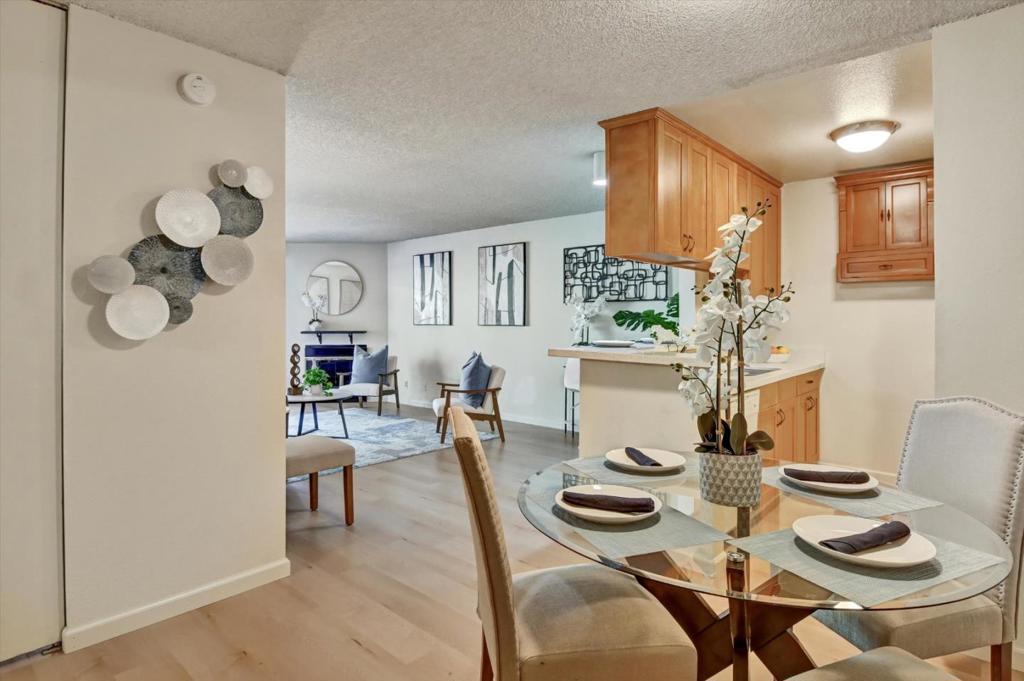 Welcome to this charming 717 sq ft unit located in Daly City. This home offers a well-designed kitchen equipped with solid surface Quartz countertops, a dishwasher, garbage disposal, an electric oven range, and a refrigerator, making meal preparation a breeze. The dining area provides a cozy space for meals. Double pane windows and glass patio door to a private deck offers increased energy efficiency, added peace & quiet, & enhanced security. The unit features beautiful laminate and wood flooring throughout, adding warmth and style to the home. A welcoming fireplace enhances the living space, offering comfort during cooler days. Residents can take advantage of a variety of community amenities, including a heated in-ground pool, spa, steam room, and sauna, perfect for relaxation and recreation. The community facility also includes laundry services for added convenience. This property is part of the South San Francisco Unified School District, catering to elementary education needs. Additional highlights include one garage space and a community facility for laundry, ensuring practicality and ease of living. Open House: Sun Feb 1 1-3pm