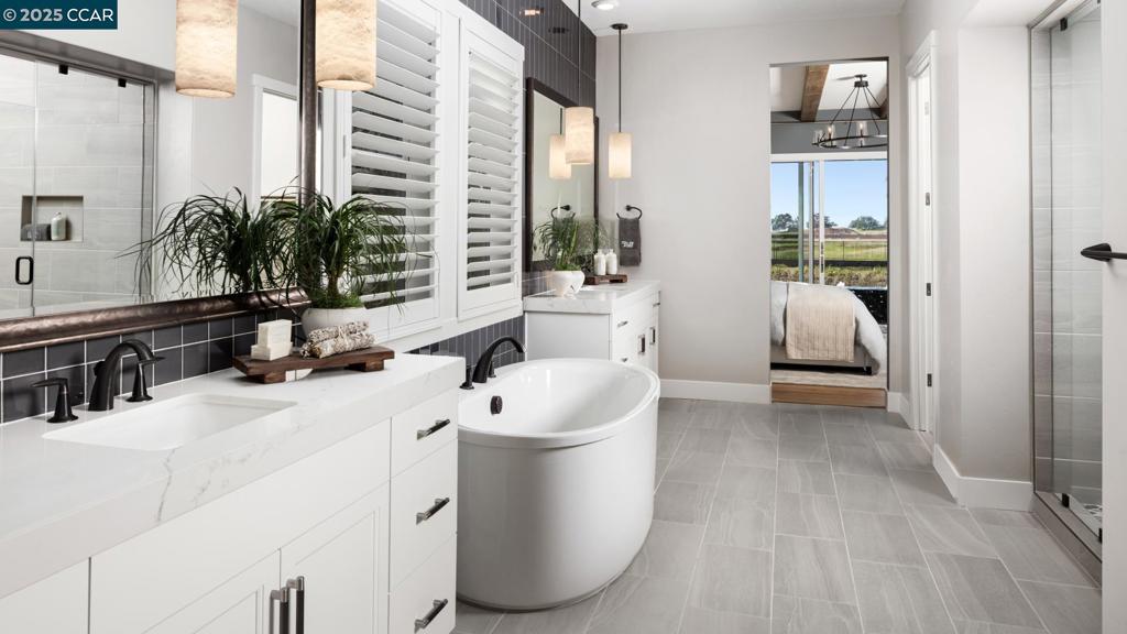 Welcome to Regency at Tracy Lakes 55+ active adult gated community, with luxury living. With three picturesque lakes, this community offers a fishing dock, 1-acre garden and dog park. With a wealth of amenities, including a clubhouse, indoor and outdoor pools, cabanas, a yoga studio, fitness center, bocce ball, and pickleball courts, every day here is an opportunity for relaxation and recreation. Onsite lifestyle director ensures there’s always something to look forward to; from fitness classes to comedy shows and wine nights. This home is situated within walking distance of the Resort Style clubhouse. Chef's dream kitchen comes complete with a large center island with a breakfast bar, upgraded stainless steel appliances, 48" gas range, modern cabinets, quartz countertops with backsplash. The great room is the perfect setting for relaxation with its cozy fireplace and ample natural light. Primary bedroom suite, with Primary bath complete with dual vanities, soaking tub, and a large shower with a seat. Sizable office and convenient workspace. 3-car garage leads to drop zone entry and convienent laundry (photo not of actual home/yard, for marketing only) See Designer Appointed Features. Move-in Ready