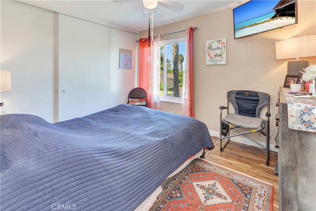 Fantastic opportunity to own a 4bd 2.5bth + office pool home. Laminate flooring throughout with remodeled Kitchen featuring granite counters, newer cabinets, generous sized eating area and formal dining. Large living room with fireplace and french doors leading to the rear patio deck. Other upgrades include Dual Pane windows, newer roof, and newer HVAC. Upstairs rooms are light and bright with abundant space. Spacious Primary Bedroom features its own balcony with beautiful views of Saddleback Mountain. Property is adorned with abundant fruit trees throughout. Easy access to the 5 freeway as well as surrounding Parks & Amenities.