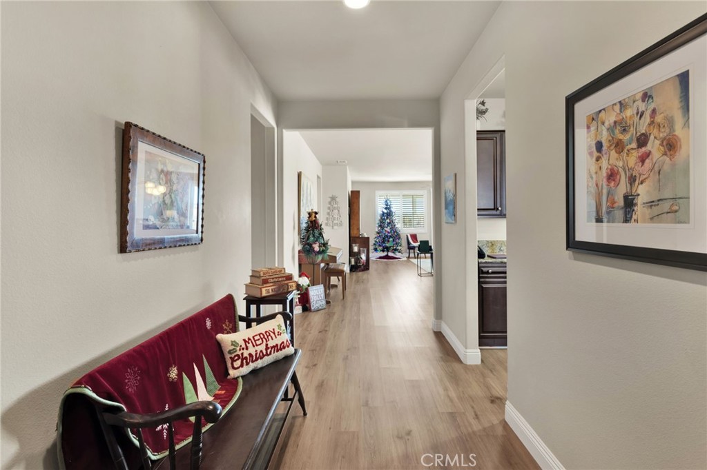 Imagine waking up each morning in your cozy, beautifully-maintained home nestled in the heart of Solera at Del Webb. As you sip your morning coffee, you're treated to stunning views of the San Gabriel Mountains right from your own backyard. The peaceful landscape, the sound of birds chirping, and the fresh air make it feel like a daily retreat. Inside, the home welcomes you with an open-concept living area, perfect for both relaxation and entertaining. The spacious kitchen, with its granite countertops and generous cabinet space, invites you to whip up your favorite meals. And when you're done, a bright breakfast nook is the perfect spot to enjoy your meal while soaking in the sunshine. The bonus room offers endless possibilities—whether it’s your quiet office for peaceful work-from-home days, a hobby space for creative projects, or a guest room for family and friends. The primary suite is your personal haven, with a huge walk-in closet to keep everything organized and an upgraded walk-in shower that adds a touch of luxury to your daily routine. And after a day of enjoying the resort-style amenities—whether you’ve been working out in the fitness center, playing pickleball with neighbors, or lounging by the pool—you can unwind in your beautifully landscaped backyard, resting under the covered patio with breathtaking mountain views in the background. This home isn't just a place to live—it’s a lifestyle. Whether you're hosting friends or enjoying a quiet evening at home, every detail is designed to enhance your comfort and happiness. With easy access to everything you need, from indoor laundry to a garage that keeps everything organized, this home makes life simpler and more enjoyable. Welcome to the lifestyle you’ve been dreaming of.