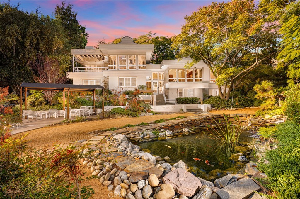 Another masterpiece crafted by renowned architect Ernest Velarde, this exceptional residence is located in the prestigious Peppertree Bend community of San Juan Capistrano. Designed with a refined modern Japanese contemporary fair, the home features an open floor plan that effortlessly harmonizes indoor and outdoor living. Set on a full acre, the grounds are a true work of art. Owners were inspired by the tradition Japanese Stroll Garden, the landscape embodies tranquility and authenticity. A gentle waterfall cascades into a reflective fish pond surrounded with white water lilies, many specimen trees, plants and vibrant flowers create a lush, park-like atmosphere. Winding pebble pathways lead through the gardens to a thriving fruit orchard, offering peaceful moments at every turn. This property is a rare fusion of architectural significance, natural beauty, and timeless design—an extraordinary sanctuary in one of San Juan Capistrano’s most coveted enclaves.