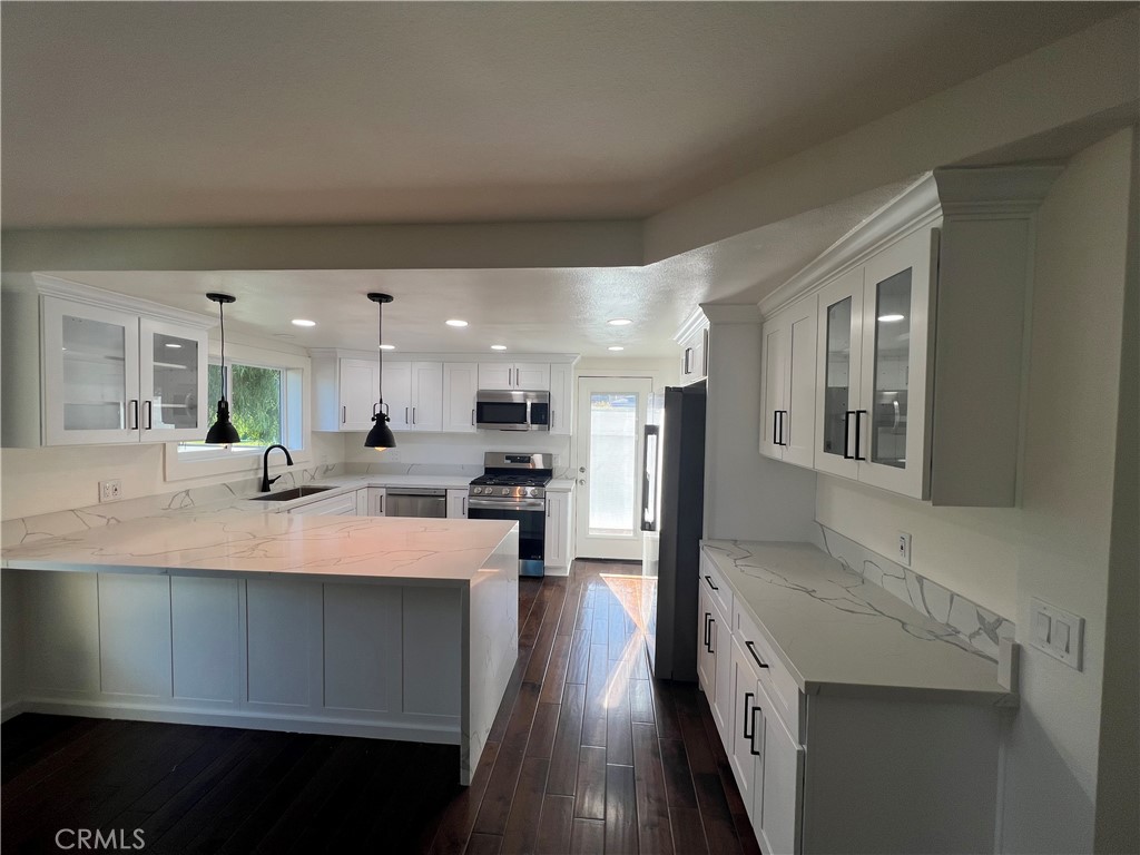 Now Leasing! Beautifully remodeled 5-bedroom, 2-bath home featuring a brand-new gourmet kitchen with stainless steel LG appliances, sleek countertops, and white cabinetry. Bright and open layout with connecting living and family rooms, plus a cozy fireplace and large sliding glass door leading to the backyard. One bedroom is located on the main level; four bedrooms, including the primary with en-suite bath, are upstairs. Enjoy a private backyard with a sparkling pool and relaxing jacuzzi perfect for year-round SoCal living. Additional features include a two-car garage, spacious driveway, solar power, and a convenient location near parks, shopping, dining, award-winning schools, the 405 freeway, and just minutes from Huntington Beach Pier. Move-in ready and perfect for renters seeking comfort and style in a prime location.