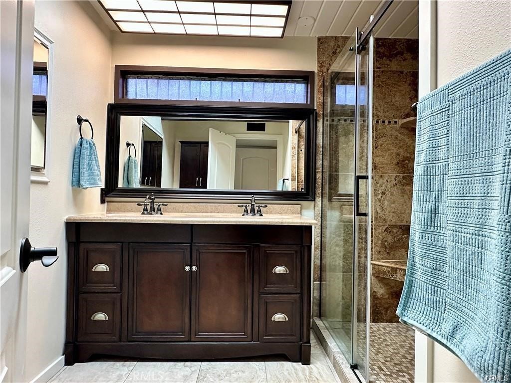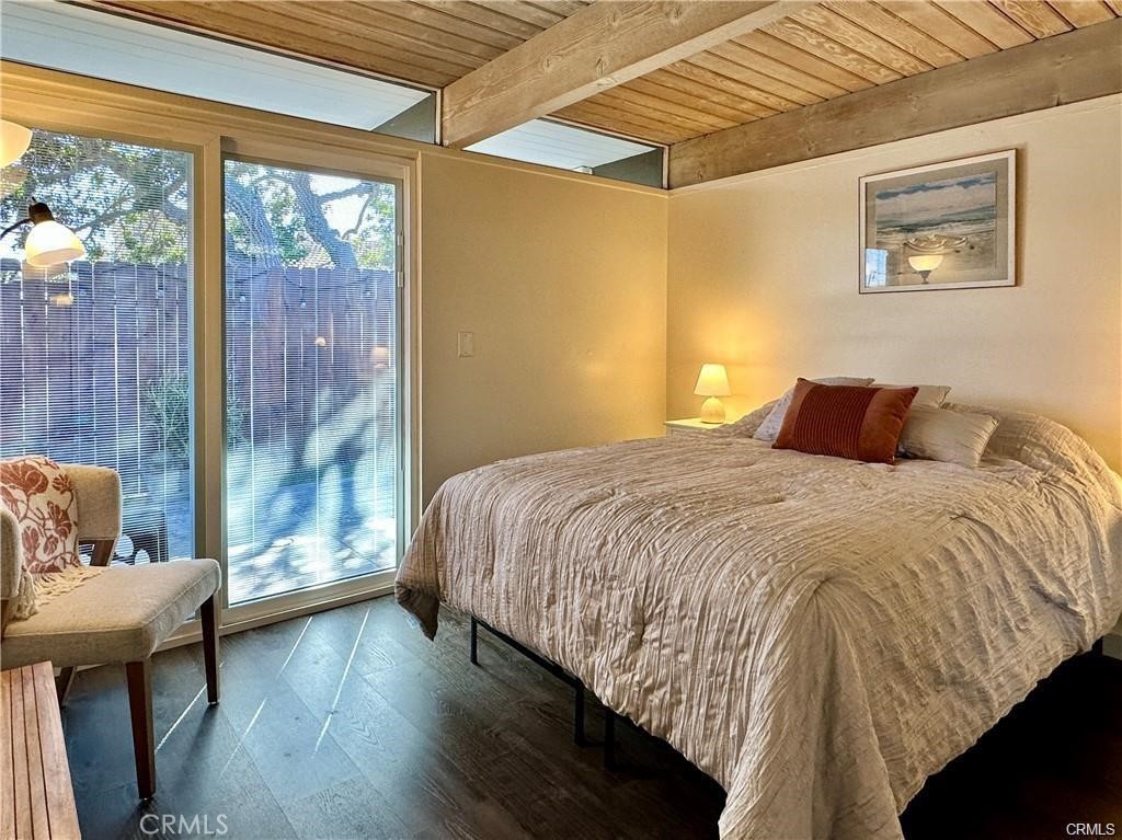Welcome to 214 Del Gado Rd, 6-9 month term preferred, Fully Furnished mid-century modern oasis located less than a mile from the sand with easy access to San Clemente’s laid-back lifestyle. Nestled in the highly sought after private community of Vista Del Gado in North San Clemente, this home has everything needed to walk in and feel at home. From the airy and private front patio, enter through French doors into an open floor plan with newer luxury vinyl plank flooring throughout. The kitchen opens to the living and dining areas with granite countertops and bar seating, ample storage, and stainless appliances. The hall bathroom is flooded with natural light and conveniently has a dual vanity with cabinet storage plus a walk-in shower and skylight. The spacious primary bedroom has a king size bed with two wall shelves on an accent brick wall with sliding door to the back patio, this bedroom also has its own private half bath. The secondary bedroom has a queen bed also with direct access to the back patio. Other notable features include central air conditioning, laundry, and dual paned windows & doors with encased blinds. Community amenities include a solar heated saltwater pool, clubhouse, park, and grounds maintenance. One assigned space + detached 1-car garage and ample guest parking. Furniture is not negotiable, it must be included with the rental.