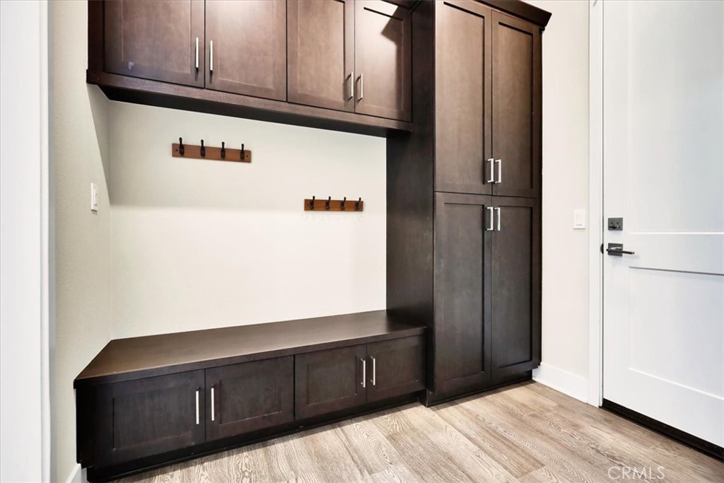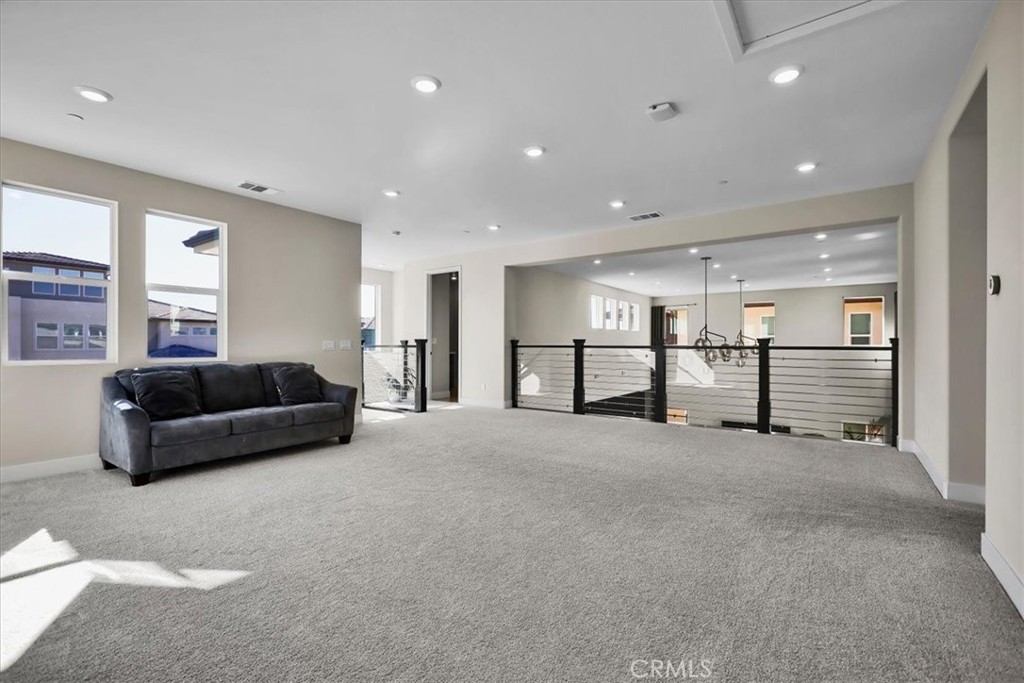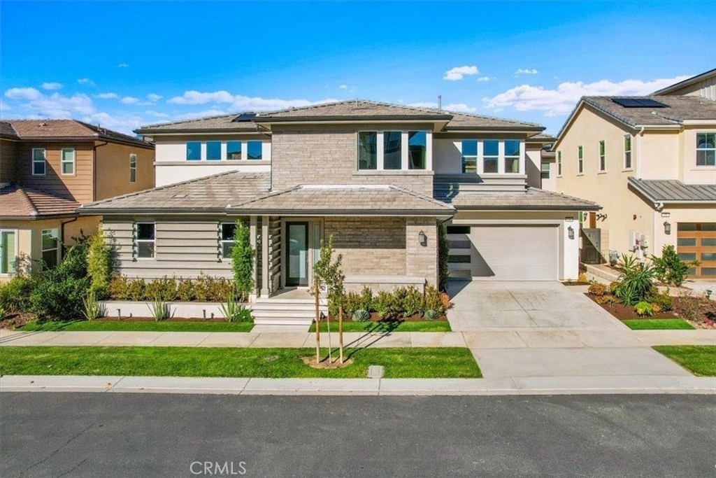 Nestled within the prestigious 24/7 guard-gated community of Altair Irvine, this cul-de-sac home combines modern design and elevated finishes throughout. The neighborhood also benefits from 24-hour security patrol throughout the community offering an added level of comfort. Beautiful curb appeal, neat landscaping, and a two-car driveway set the tone before entering through an impressive front door into a bright, open-concept interior. The main level features a breathtaking great room with high ceilings, recessed lighting, elegant fixtures, and clerestory windows that draw in abundant natural light. Hardwood floors extend through the living and dining areas, all connected seamlessly to the expansive chef’s kitchen. The kitchen offers dark wood cabinetry, stainless-steel appliances, extensive storage, and a massive island with bar seating. Large sliding glass doors open to a beautifully appointed California room complete with recessed lighting and a fireplace. The backyard continues with clean hardscape and a manicured grassy lawn. The main-floor primary suite is conveniently tucked off the great room featuring tall ceilings, generous windows, and a spacious walk-in closet. The ensuite bath includes a dual-sink vanity, separate water closet, linen storage, and a large glass-enclosed shower with stone tilework, a rainfall showerhead, handheld shower wand, and built-in bench. Also on the first floor is a transition space with cabinetry that leads to a powder room, utility closet, and direct access to the two-car garage, which features additional storage. A staircase near the entry leads to the second level where an expansive loft overlooks the downstairs with a modern railing and offers flexible use as a playroom, or additional living area. This level includes two well-sized bedrooms with closet space, a full Jack-and-Jill bathroom, a separate powder room, and a spacious laundry room equipped with cabinetry and a utility sink. Altair Irvine residents enjoy resort-inspired amenities, including an expansive clubhouse, three resort-style pools and spas, a tot lot, tennis courts, and bocce ball courts, with a basketball court and two pickleball courts coming soon. The community is located near top-rated Irvine Unified schools, beautiful parks, and premier shopping and dining destinations such as Portola High School, Great Park, Irvine Spectrum, and Woodbury Shopping Center, with convenient access to major freeways and highways.