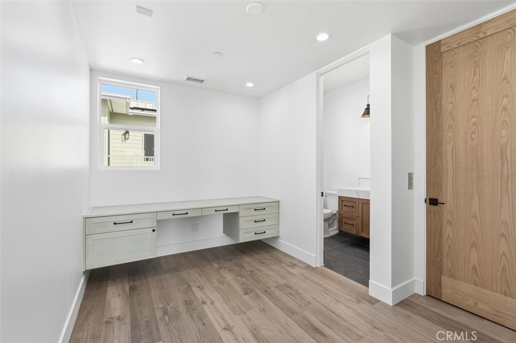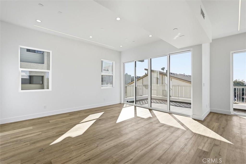 This rear unit is the largest of them all. With 5 bedrooms and 3.5 baths and an elevator it's well suited for family, friends, and overnight guests who may never want to leave! Come experience the incredible weather the South Bay has to offer. With multiple balconies, a rear yard, and a roof top deck there's a place for everyone to relax and entertain. There are 2 'front' doors - one from the walkway on the south side of the property and one by the garage. There are 2 bedrooms and a bath on the lower level along with a room that could be used as a playroom, an office, or a personal yoga studio. The next level up houses the primary bedroom, an elegant bath, and walk-in closet, in addition to a laundry room, and two more bedrooms with a shared bathroom between them. The top level boasts a big kitchen with Thermador appliances, a pot filler, an apron style sink, and built-in wine rack. The large living area lends itself to a variety of layouts, so you have your choice of where to position your living room and dining room furniture. There's also another office space where you can work from home or keep an eye on the kids as they tackle homework. This level has the largest balcony to take advantage of incredible sunsets. 220v in the garage is all ready for your personal EV charging station.