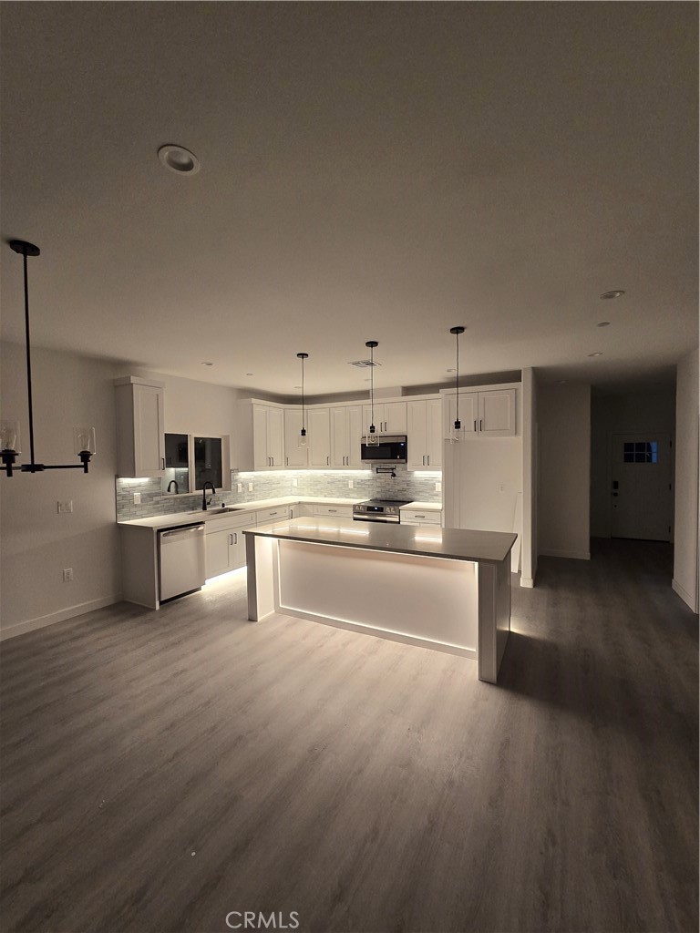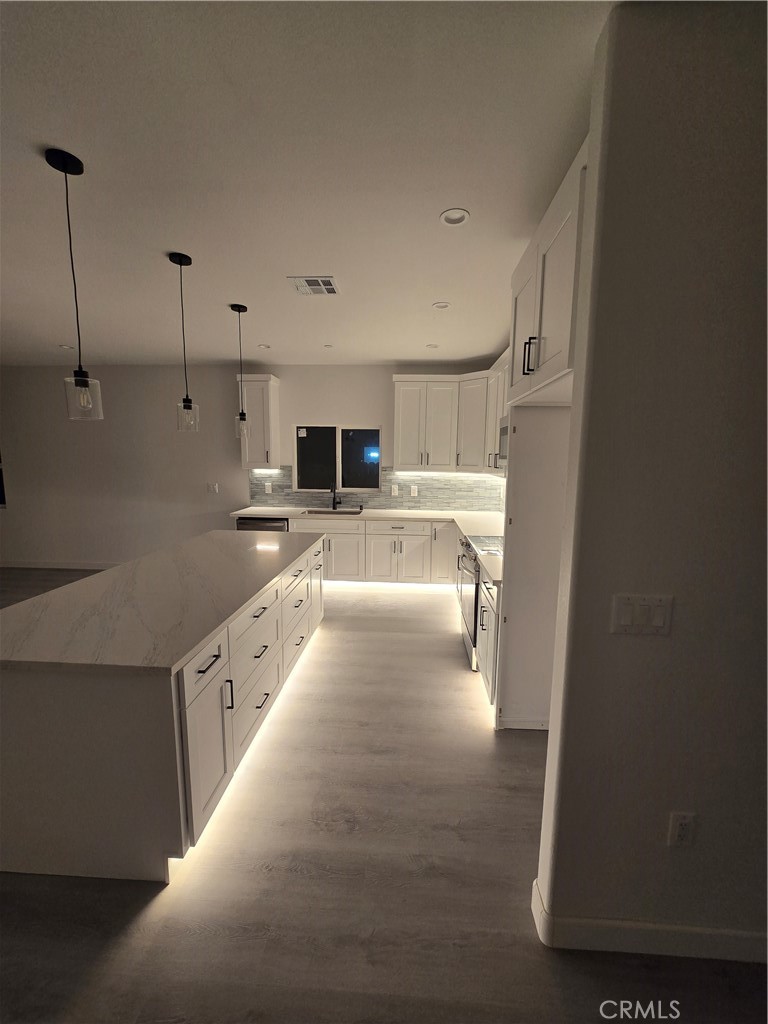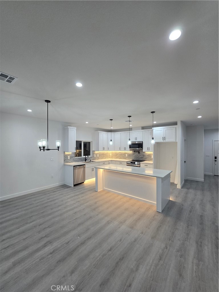 Experience the pinnacle of modern luxury in this stunning 2025 newly built single-story estate—an exceptional residence offering elevated design, premium upgrades, and a level of craftsmanship that surpasses neighboring new builds. With an expansive 2,056 sq ft of refined living space and over 3,100 sq ft under roof, this home offers grandeur at every turn. From the moment you enter, the home radiates sophistication. The expansive living room—brightened by abundant natural light and elegant recessed lighting—flows seamlessly into a chef’s kitchen crafted for both beauty and performance. Anchored by an oversized island, the kitchen boasts premium quartz surfaces, high-end stainless steel appliances, modern cabinetry with LED under-cabinet lighting, a designer mosaic backsplash, and a chef’s pot filler for added luxury. The generous dining area creates a refined setting for both intimate meals and upscale entertaining. The private primary suite is a serene retreat, offering a spacious walk-in closet and a calming atmosphere perfect for unwinding. Spa-inspired bathrooms feature contemporary cabinetry, sleek quartz countertops, and high-end fixtures. Throughout the home, rich laminate flooring and curated lighting—including bedroom wall-mounted nightstand sconces—elevate the ambiance. Functionality meets luxury with substantial enhancements rarely found at this price point: • Four bedrooms - 2.5 baths • Bedrooms, living room and patio are prewired for ceiling fans • RV access with 12 foot double gate. • Larger covered patio (283 sq ft) ideal for outdoor lounging • Oversized insulated garage (572 sq ft) • Large porch (232 sq ft) for an impressive entry • Upgraded appliance package • Kitchen & island LED strip lighting for a refined nighttime glow • Fully paid solar system delivering significant energy savings Step outside to enjoy the extended patio, RV access, new fencing for privacy, and a pristine neighborhood feel enhanced by surrounding new construction. Positioned near local conveniences and Tierra Del Sol Golf Course and Central Park featuring the Arts and Community Center, Dog Park and Senior Center, this home offers both luxury and lifestyle. A true modern masterpiece—crafted larger, built better, and designed to impress even the most discerning buyer.