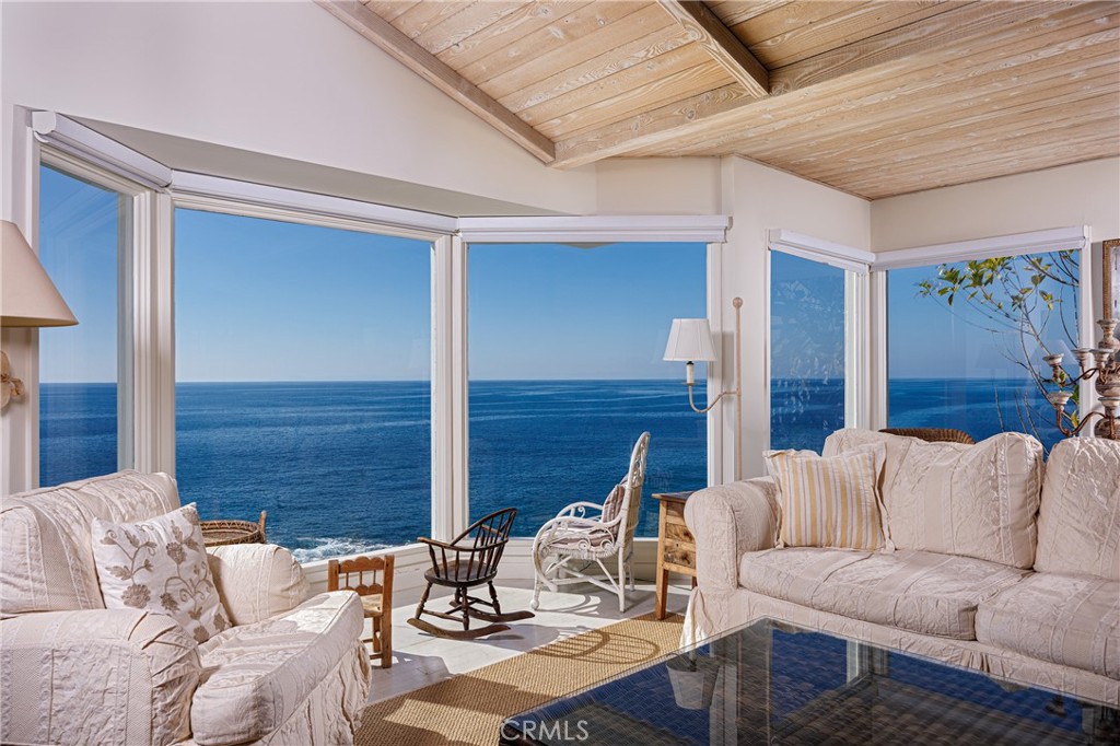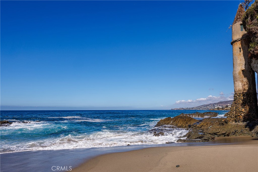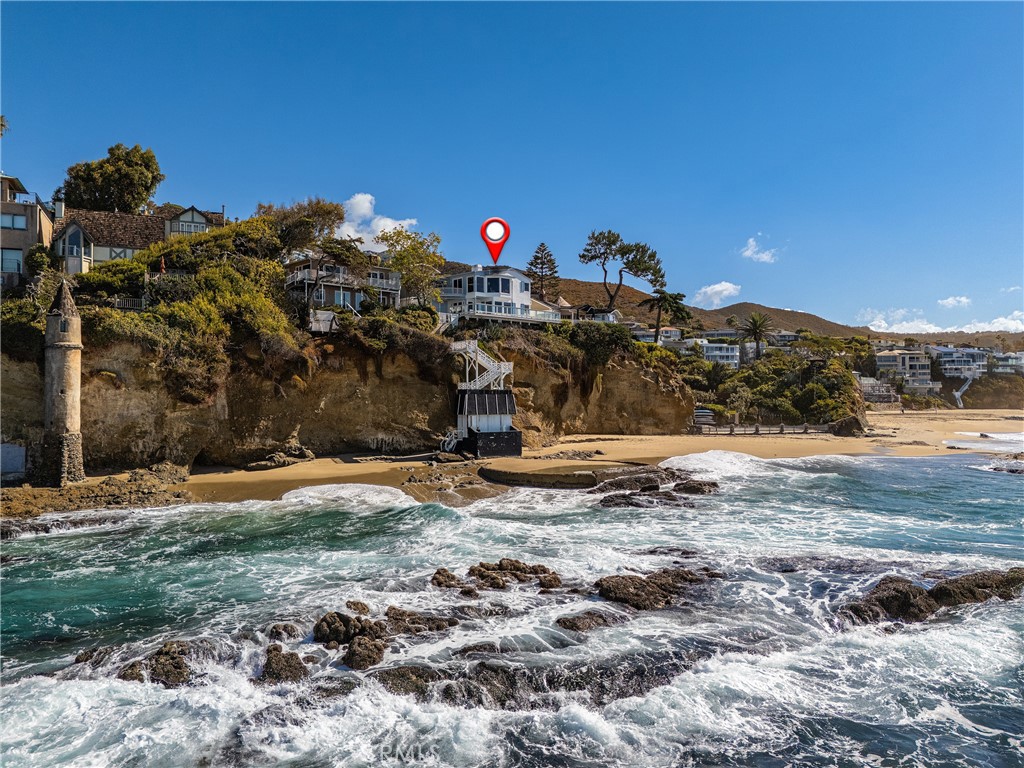 Directly above one of the most photographed locations in Laguna Beach, this stunning three-bedroom, three-bath home is the epitome of ocean-front living. Peering directly down from the private deck into the "Mermaid Pool" (an actual ocean-filled saltwater pool), the experience almost seems surreal. Just to the north is another famous landmark, the "Pirate Tower," making this section of beach the preferred destination for posters seeking followers on their TikTok and Instagram feeds. This classic 1940s home is a throwback to a gentler more comfortable time when the sounds of the crystal clear waves crashing on the rocks below your deck, and watching the sun dip behind Catalina Island were all the entertainment anyone required. This special place offers a peaceful and tranquil retreat that will cleanse one's soul from the daily pressures of day-to-day life. Be one of the fortunate few to take advantage of this truly unique experience.