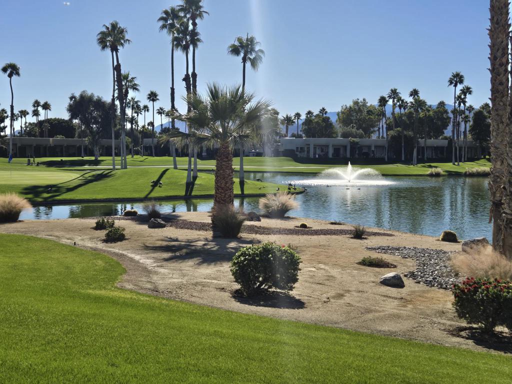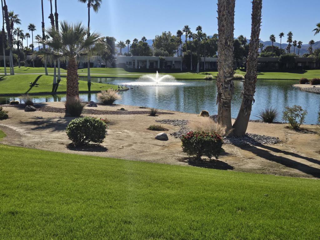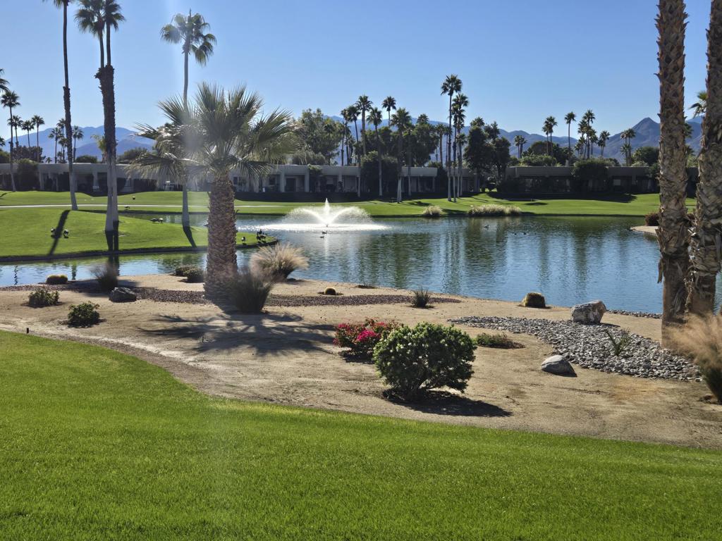 WOW! NEW LOWER PRICE PER MONTH! Amazing views South to mountains, ponds, 3 fountains, and Lagos 3 fairway and green. Upgraded appliances. Freshly painted. Single-car detached garage. Gated community. The Desert Princess has an affordable 27-hole PGA Championship golf course, no Tee-time lotteries, no initiation fees, rated among the best in the valley by GOLF DIGEST. This quiet community is away from the noise yet minutes from everything that is in Palm Springs; restaurants, shopping, casinos, an international airport, the Tramway, Art Museum, Theaters, and the Street fair.Restaurant on site. Health and fitness center on site.