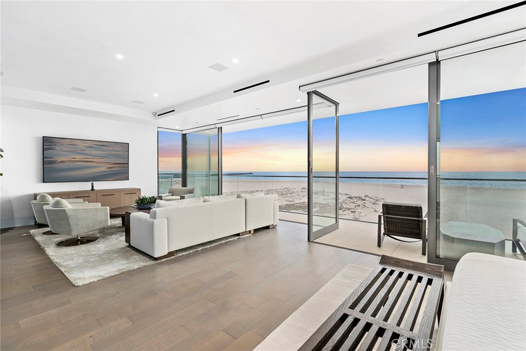The wow factor! A striking contemporary home on the sand on prestigious Peninsula Point. Sited on an oversized lot and affording sweeping views of the shore-break, Catalina Island and the infamous Wedge, this dramatic five bedroom, five and-a half bath coastal home with a serene color palette and luxuriant designer finishes is being offered as a fully furnished, executive rental home with flexible lease terms. Grand scale rooms, dramatic lighting and entertainment systems, a professional-grade kitchen and bar area, and a large oceanfront terrace with built-in spa and fireplace combine to create a one-of-a-kind lifestyle experience. The extraordinary master suite and sitting area are surrounded by walls of glass that open to a private terrace overlooking the coastline. A lavish spa bath with wet room shower, steam room, soaking tub and dual vanity adjoins the suite. Four additional bedrooms each with en-suite bath. The first floor bedroom also functions nicely as an office. Full home automation, a voluminous two car garage, abundant storage and some of the best views ocean in Southern California complete this unprecedented offering. Construction of new home next door fully complete.