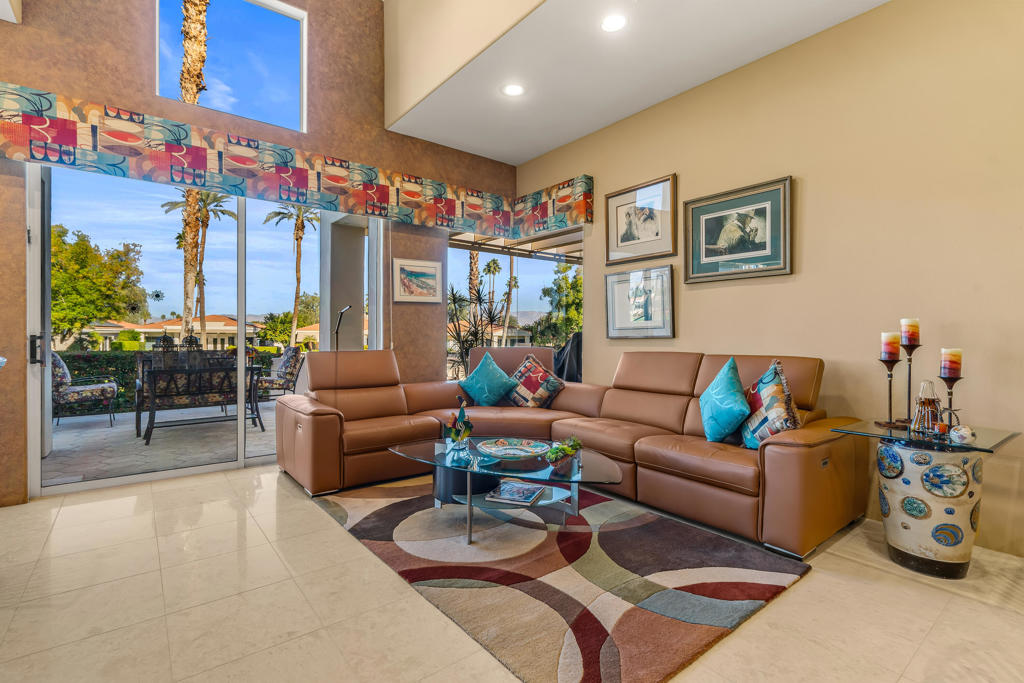 Welcome to a private home located in Desert Horizons County Club in Indian Wells. This beautiful free-standing Winged Foot floor plan has 2,855 sq. feet with two en-suite bedrooms, den/office plus a bonus room being used as a game room. This special elevated lot is on the 12th fairway, on a cul-de-sac and steps from a community pool. Professionally landscaped lot features extensive desert scape, private fountain and wrap around patio spaces. The Country Club has been totally remodeled and has a state of the art workout facility, additionally the pickle ball and tennis courts have been redone to include a pavilion. There is something for everyone.