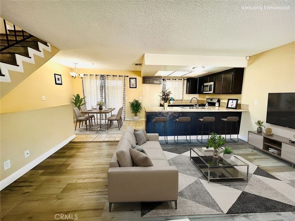 This is an Updated Townhouse style unit in the heart of Chino with easy access to 60 and 71 freeway. Enjoy shopping in Chino Town Square, Chino Spectrum Town Centre, Ontario Mills and Victoria Gardens in very close distance!! This near end unit features NEW PLANK FLOORING throughout, Kitchen updated with dark brown Cabinets, Granite Counter Tops and Stainless Steel Appliances. First Floor offers an Open Plan with Large Living Room, Modern Kitchen with Nook Area, and a HUGE Balcony perfect for a family's Entertainment and BBQ during the weekend. Second Floor boasts 2 Spacious Bedrooms (including the Master Suite) and each room has its own Bathroom and Large Closet, and a Laundry room at hallway. It also comes with a 2-car attached garage with direct access to the unit and a good size room next to the garage great for storage or study/exercise room. HOA Monthly Fee is low $326 including Water and Trash Collection. The home is READY TO MOVE IN.