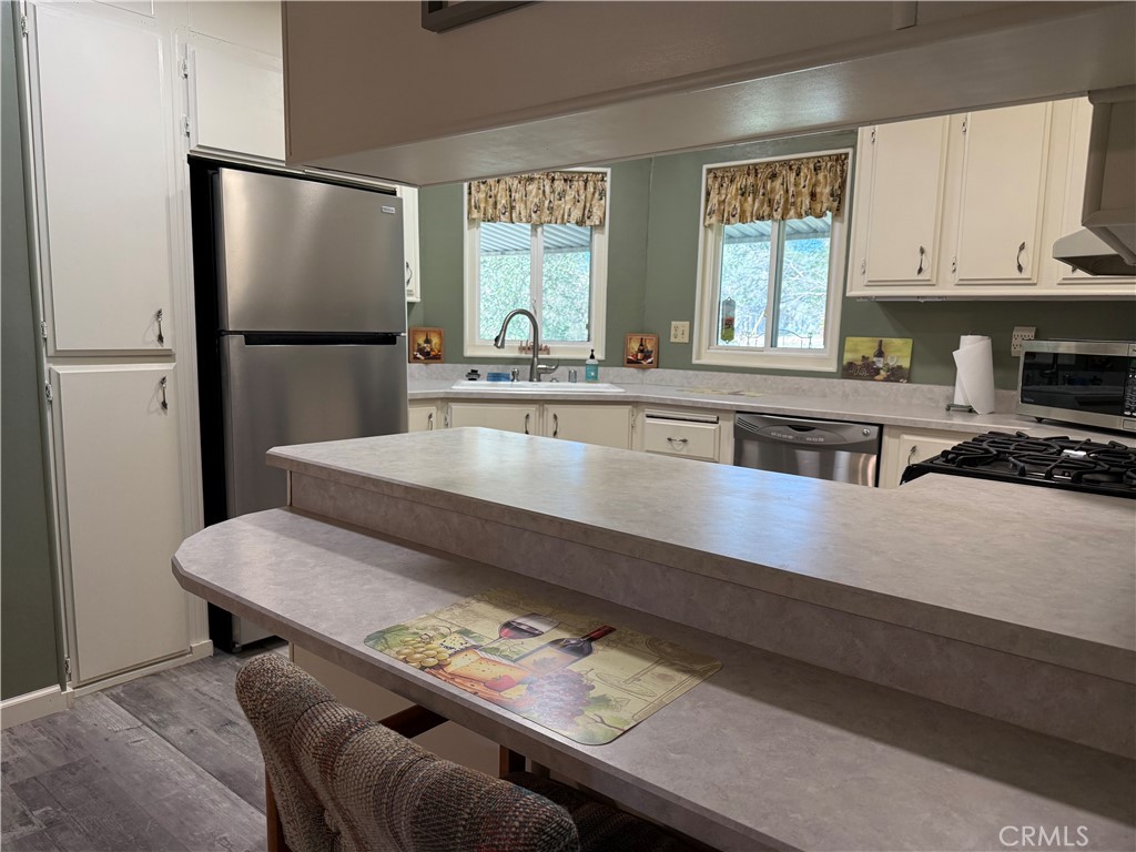 Enjoy spacious living on over an acre! This updated manufactured home is now available, nestled on more than an acre of mostly level land. At the end of the drive in the cul-de-sac, cross the charming bridge to your oasis in the trees! This cutie checks all the boxes with two roomy bedrooms plus a third office/bedroom/sewing room with built in desk and laundry. This home offers a cozy atmosphere with stylish finishes like the living room free standing propane stove. There is a separate dining area and huge bonus room with cabinets perfect for a game room or craft area. This one boasts a detached two car garage, a detached two car carport (perfect for RV parking), two garden sheds and a he/she-shed that would make a great art studio, potting shed or workshop. Your chickens will love it here! Seasonal creek provides privacy making it feel worlds away, yet near the front of the subdivision for easy commute. Perfect for those seeking peace and privacy, the expansive yard provides ample space for gardening. What the seller loves most is drinking morning coffee on the front porch in the mornings. YOU might like growing bananas and peppers in this "banana belt" area of the ranch. Recent renovations and repairs make this one a great candidate for FHA or VA financing, with inspections all done for you! Don't wait, this one won't last!