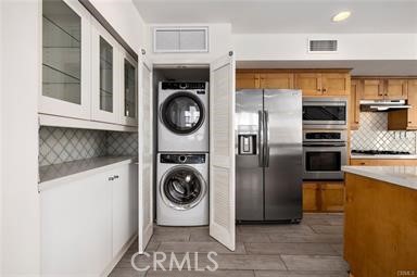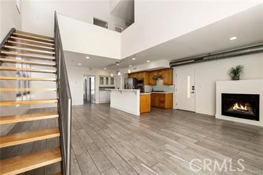 Work from home at this stunning 3-bedroom 2 full bath home complete with interior stacked newer washer and dryer. The award-winning downtown Brea Lofts location is just down the way from fine dining, restaurants, grocery stores, Starbucks coffee! Walk to where you need to be! This exciting interior design really has such wide-open spaces and there is a good-sized patio to enjoy your morning cup of coffee. All of the kitchen and bathroom counter tops were upgraded with a beautiful quartz design. The downstairs flooring was completely upgraded with a gorgeous grey tile that is durable yet easy to clean! There is a beautiful kitchen countertop seating area that opens up to the incredible giant living experience area. The fireplace has a modern appeal for any furniture design as there is so much space for comfortable living and even room for a formal dining room and or office all downstairs and there are 2 master suites really as the bedroom downstairs is very large with the restroom just outside the door. As you head up to the 2nd level you will notice the post retention stair well made of iron and wood plank stairs which will really stand solid during any earthquake as the entire property is made of all steel framing! Very clean wool blend carpet up-stairs for strength but soft as grass under your feet as you make your way to the up-stairs master suite with its very own balcony. The dramatic vaulted ceilings and recessed lighting really add to the art of living here! Oversized walk-in closets for lots of storage and wait until you see the views of the hills from your North facing balcony! There is a single car enclosed garage and a 1 car parking space in the car port area that is covered. This incredible townhome is located above its own garage, so the entrance is on the 2nd level! There is a small dog park area on site and exterior Bar B-Q station as well as an outdoor seating area if you want to entertain guests on site at the common areas. There are retail stores below and the retail office below is not part of the living space for this lease. Come on over and stay awhile and see what Brea has to offer. So close to everything including great schools! The Brea Plunge is just across the street for fun in the pool and concerts in the park are available during the Summer! Refrigerator included and a nice addition to our newer stainless-steel appliances! Walk in Shower! End Unit no common walls! Brea has so much to offer!
