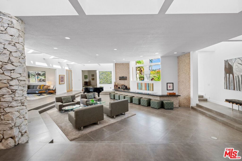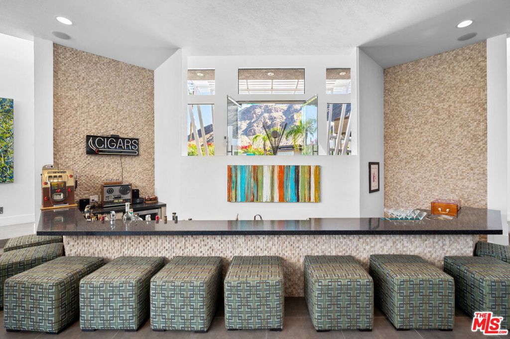 Welcome to 1650 E Murray Canyon Drive, historically known as The Waterfall House, a true contemporary architectural gem nestled within the coveted Indian Canyons neighborhood of South Palm Springs. This custom-designed home, built in 1978 by celebrated local architect James Cioffi, exudes timeless elegance and modern sophistication. Step through the private courtyard to behold the entrance's custom steelwork, introducing this striking home with its pool, cascading waterfall, spa, lounge seating area, and BBQ. The expansive open living areas seamlessly connect indoor and outdoor spaces, bathed in natural light from all directions. The interior structural lines beautifully complement the home's architectural imprint, creating a harmonious ambiance and optimal privacy. At 4,393 square feet, with three bedrooms including a luxurious en-suite primary and four bathrooms, this home is ideal for multi-generational living or entertaining guests. Dine al fresco under the covered back patio and enjoy sunsets over the 11th Tee of the North Course of the iconic Indian Canyon Golf Resort, a unique location surrounded by spectacular desert mountains. Key features include a putting green, floor-to-ceiling stone fireplace, two walk-in primary closets, a chef's kitchen with granite countertops and stainless steel appliances, a den, clerestory windows throughout, a sunken living room and immense bar, and a two-car plus golf cart garage, with golf courses, hiking trails, and horse stables nearby. This desert retreat offers the finest in Southern California living.