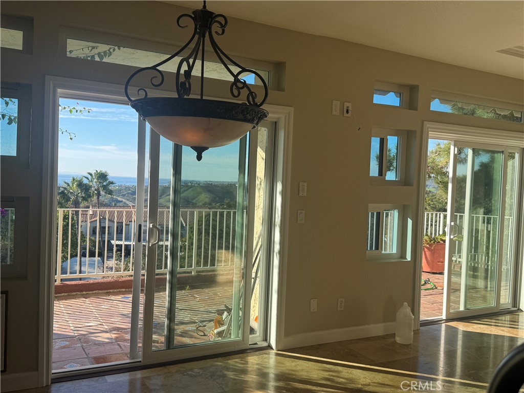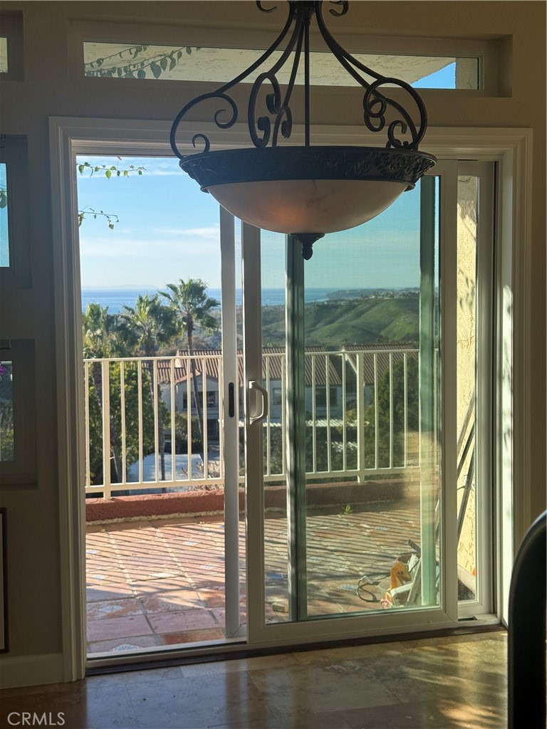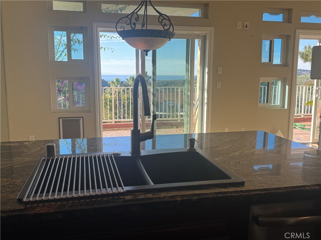 Ocean view end Unit exquisitely upgraded; 2+ bedroom, with dual lofts, 2 1/2 bath home. This is one of the rare units with driveway parking in the complex. Enter this beautifully remodeled home through a dutch door that allows an ocean breeze to flow throughout the whole house. Double paned windows maintain the home's temperature: cool or warm. It's all about the stunning view & gorgeous features. Each level offers a panoramic ocean, hill, & city light view. Every square foot is well thought out & accented with high end finishes: stone; hardwood floors; lighting; automatic window awnings; & much more. The gourmet kitchen features granite, self-closing drawers, pull outs, lazy susans, a pantry; stone backsplash, lighting & gourmet appliances with laundry & half bath down the hall. The living room has a stone fireplace open to the dining area & large patio. Beautiful wooden stairs ascend to the spacious upstairs. On your left is a loft which can be used as a bedroom or office. To the right is a nice size master suite, with 2 closets, dual sinks, a soaking tub & separate gorgeous steam shower. Then step outside onto your own private balcony. The 2nd loft/living room shares the master bedroom's remote control temperature sensitive fireplace, wet bar & unobstructed view of the bay. Each bedroom is fitted with remote control fans. The attached two car garage has built in cabinetry. Beautiful ocean view community pool and spa. Close to Lobo Elementary School and San Clemente High School. Also close to Lifetime Fitness for all your exercise needs.