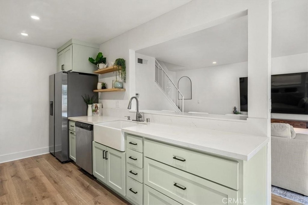 Completely remodeled Westlake Village townhome! Every inch of this turnkey home has been beautifully updated—featuring new luxury flooring, recessed lighting, and double-pane windows and doors that fill the space with natural light. The stunning kitchen offers custom cabinetry, a farmhouse sink, under-cabinet lighting, smart stainless-steel appliances, and a larger remodeled picture window. The bathroom has been fully redone with new tile, vanity, and fixtures, while mirrored closet doors and fresh baseboards add a modern touch. Enjoy peace of mind with a new electrical panel, tankless water heater, and brand new smart appliances throughout. Washer and dryer relocated to the garage for added living space. Huge master with plenty of room for your king size bed and nightstands. Located in a quiet, highly sought-after neighborhood near the lake, with access to two pools, a clubhouse, and a basketball court. Move-in ready perfection in the heart of Westlake Village! Close to shopping, beautiful restaurants, 18 hole golf course and a lovely dog park. You aren't just going to enjoy this home, you will love this lifestyle!