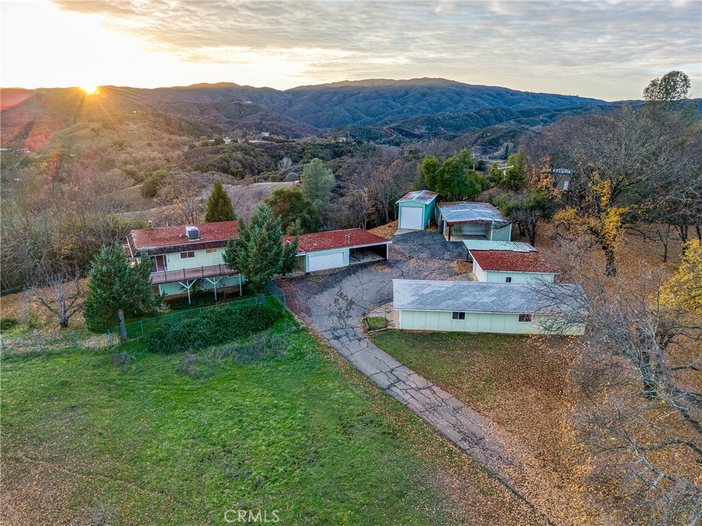 Expansive house on 20 acres in North Lakeport, offering potential for multiple units within the home and a true car enthusiast’s dream with extensive garages, shops, and workspace. Set behind a private paved driveway, this property feels secluded and peaceful while remaining conveniently close to town. The 3,851 square foot two story home is already configured for a possible two unit layout with separate entrances. The lower level features a full kitchen, two bedrooms, two bathrooms and a laundry room. Upstairs also offers a fully independent living area complete with a full kitchen, living room with a wood stove, one bedroom, and an additional room that could be converted into an additional bedroom or an office, and its own private exterior entry making it ideal for a separate unit. There's approximately 1.5 acres surrounding the home, including a fenced backyard, while the remaining approximate 18.5 acres below provide open, usable land suitable for a variety of uses. The property includes numerous carports and outbuildings, including five garages, one of which is a massive RV garage, two vehicle hoists including one interior and one exterior, plus a built in floor car lift. The home does need updating, offering an excellent opportunity to add value and customize. The property is serviced by a well and septic and includes an easement running through the land for neighboring properties, while maintaining a private driveway to the home and a strong sense of seclusion. A rare opportunity to own a large acreage property with income potential, exceptional shop space, and privacy in North Lakeport. Some of the photos have been digitally modified using virtual staging AI.