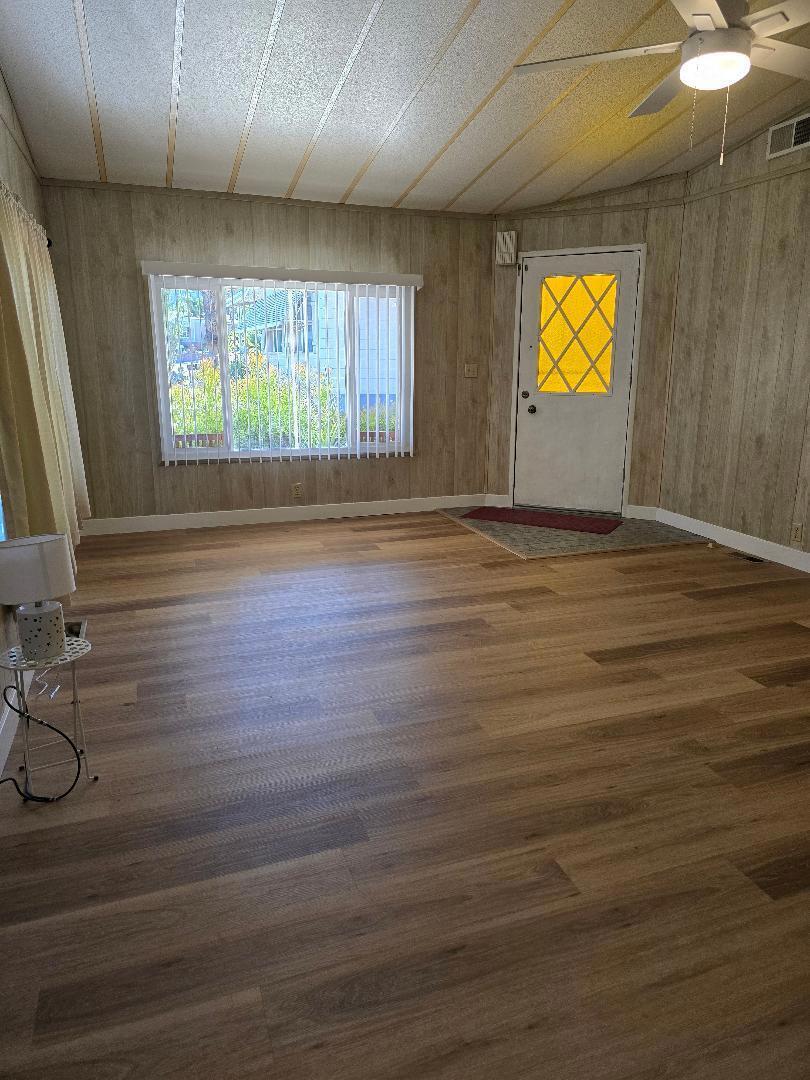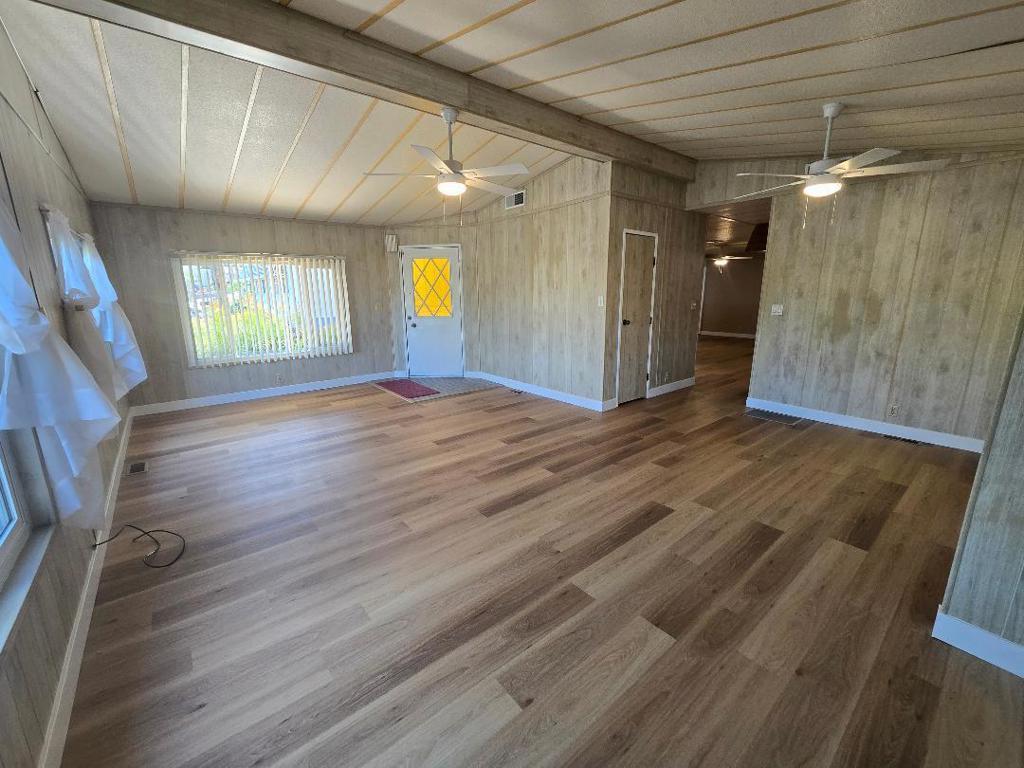 New vinyl floors throughout along with beautiful crown baseboards.New paint along with new ceiling fans. Beautiful cabinet and fixtures update. New custom walk in shower in 2nd bath room. Brand new kitchen stove and disposal. Kitchen has many cabinets and a large pantry. The home boasts 3 bedrooms, 3 bathrooms, large living and family rooms and a private office/hobby room. New window coverings, dual paned windows and new window screens.The front entrance has a new epoxy patio which is covered and large enough for entertaining and enjoying the views. The home has central heating and cooling along with an evaporate cooling system and 4 window type coolers for the bedrooms and office. There's covered parking for up to 3 cars. The backyard has a large covered patio and an elevated planter box home garden.The backyard has a new back fence along with a new white fence on the sides. The home is only 3 miles from the famous ''El Paseo'' shopping district and restaurants. Only 1 mile to the ''Living Desert''located 4 miles from the College of The Desert. The Silver Spur residents have access to the clubhouse which features a large saltwater pool/2 spas,fitness center,billiards room, library, bocca ball, putting green and a dog friendly spaces.Close proximity to the famous 'bump & grind' hiking trails. There's also a large storage shed with built in work bench.The roof is constructed with foam over shingles.Space rent is 1095 month.