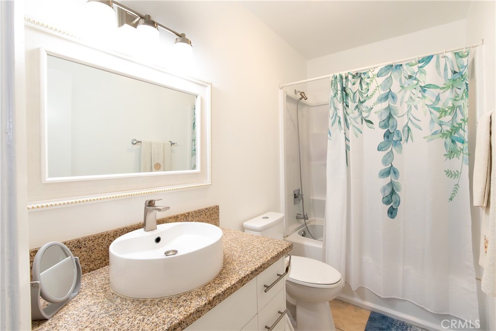 Welcome to this cozy , clean, bright, end-unit townhome in the highly sought-after Cabrini Villas hillside community! This beautiful and airy tri-level townhouse boasts private end views and direct access from the street. The spacious living and dining areas feature laminated floors and open to a large, private tiled patio—perfect for relaxing or entertaining. The brand-new kitchen includes sleek granite countertops, soft-close cabinets, and stainless steel appliances. Upstairs, you'll find three well-sized bedrooms, including a master suite with a large walk -in closet, private balcony, and a fully remodeled en-suite bathroom. The two additional bedrooms share a stylishly updated bathroom. The lower level offers a secluded two-car garage with laundry area and a bonus room, ideal for an office or hobby space. Cabrini Villas offers resort-style amenities, including 7 swimming pools, 4 spas, 6 lighted tennis courts, basketball and volleyball courts, playgrounds, and a clubhouse, all within beautifully landscaped grounds. With easy access to freeways, shopping, dining, and entertainment. This quiet and desirable end-unit townhome is truly one of a kind. Don't miss out on this exceptional opportunity! It might be sold fully furnished! Ask if you interested