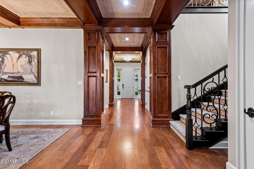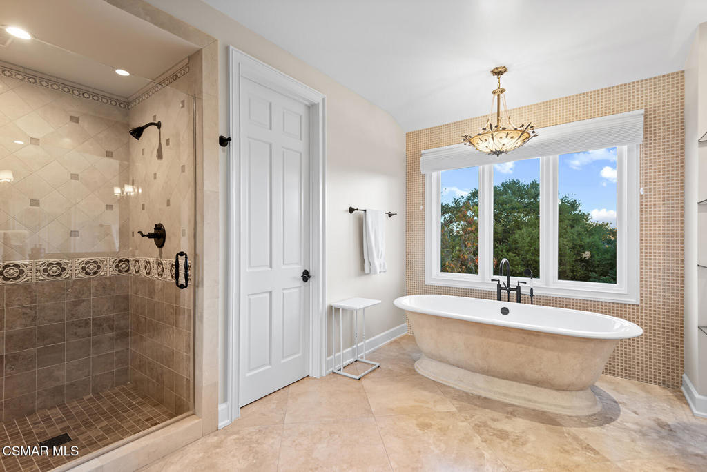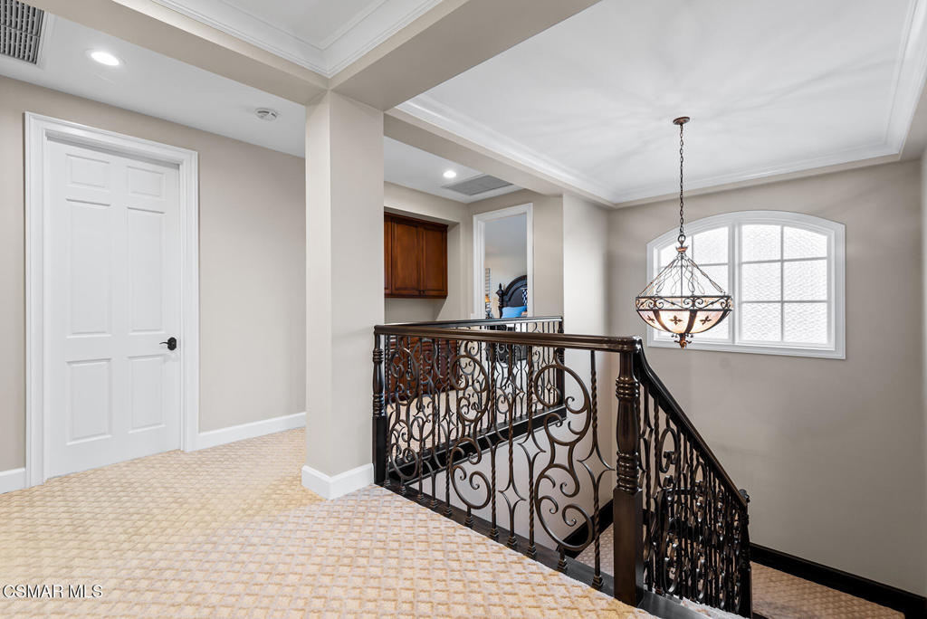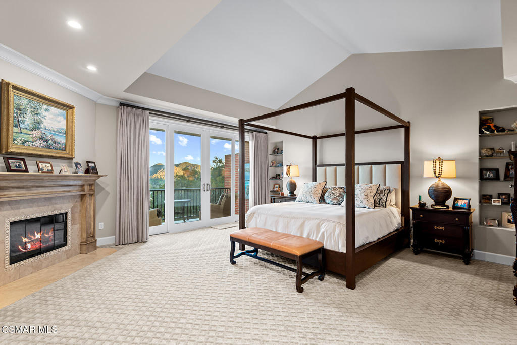 Extraordinary executive townhouse within the guard gates of Lake Sherwood! Ideally located on one of the larger lots, this masterpiece home boasts beautiful views and highly desired unique privacy! An absolutely stunning reimagined showplace that has been recently and extensively remodeled throughout using the very finest finishes and true craftmanship! The magnificent all new kitchen has been completely remodeled and now opens seamlessly to the great room! The great room is graced with custom wood beamed ceilings, bar, custom fireplace and floor to ceiling windows to take advantage of the view. There is a beautifully designed wood paneled library with French doors that opens to a private patio. This room (library) can be converted back to a main level bedroom if desired. Upstairs, there are two HUGE secondary en-suite bedrooms and a very special primary suite. The primary provides soaring ceilings, two built out walk in closets, fireplace, viewing balcony and beautifully remodeled bathroom. The backyard is enhanced by a patio, wonderful views and an abundance of lush manicured lawns. Among the homes many attributes are real hardwood floors and a fully finished 3 car garage! One of the most desired streets and locations in the much sought after guard gated Lake Sherwood townhouses!