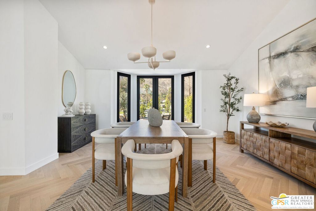 A rare blend of architectural scale, designer finishes, and panoramic golf-and-mountain views, this extensively renovated 4 bed, 4.5 bath showcase residence is ideally positioned along the 6th hole of the North Course at Indian Canyons Golf Resort. Thoughtfully reimagined from top to bottom, the home offers tall ceilings, an open floor plan, and dramatic sightlines capturing Mount San Jacinto to the west and sweeping fairway views of the 6th and 7th holes to the east. The attention to detail, paired with 360-degree mountain vistas, creates a home that truly brings home the trophy. A striking formal entry sets the tone, revealing a refined material palette highlighted by herringbone wood and tile flooring, custom cabinetry, quartz countertops, and porcelain slab accent walls in the spa-inspired baths. The design is fresh, cohesive, and publication-worthy. At the heart of the home is a light-filled gourmet kitchen offering pool, fairway, and mountain views, a large detached island, Fisher & Paykel appliance suite, casual dining area, and seamless flow to both the living room with fireplace and the east-facing backyard. The kitchen also connects effortlessly to the west-facing formal dining room, creating a flexible and elegant entertaining layout. Four private ensuite bedrooms (two on the north side of the home and two on the south) each enjoy incredible views and beautifully appointed baths. A powder bath, inside laundry with sink, and attached three-car garage. Outdoor living is equally compelling. The front of the home features a welcoming seating area with premier Mount San Jacinto views, while the backyard delivers true resort-style living with a private pool and spa, gas fire pit, built-in BBQ, and sweeping fairway and mountain vistas. Recent structural and system upgrades include a newly installed roof, dual HVAC units, tankless water heater, updated pool and spa equipment, and extensive electrical and plumbing improvements. Just minutes from world-class hiking and downtown Palm Springs, the property qualifies for a Vacation Rental Certificate offering exceptional flexibility as a full-time residence, second home, or short-term rental investment. Stunning and ready to go!