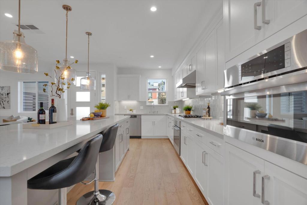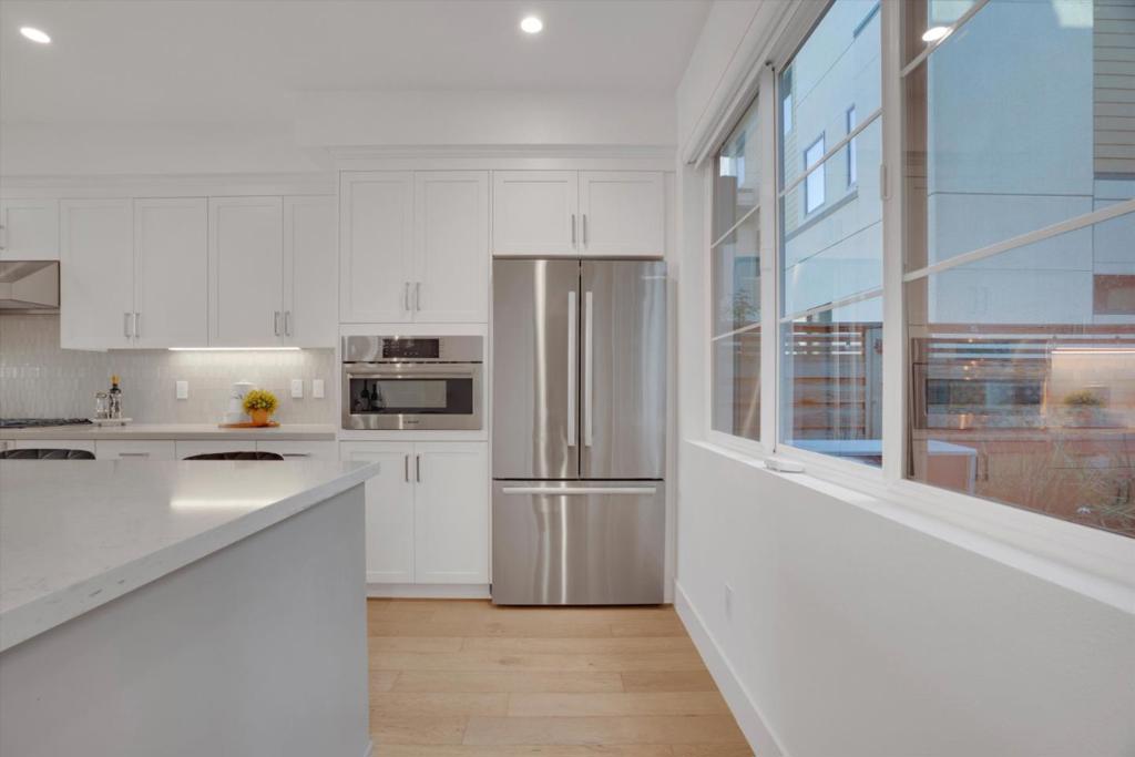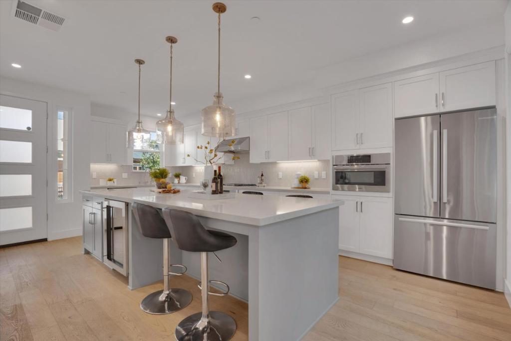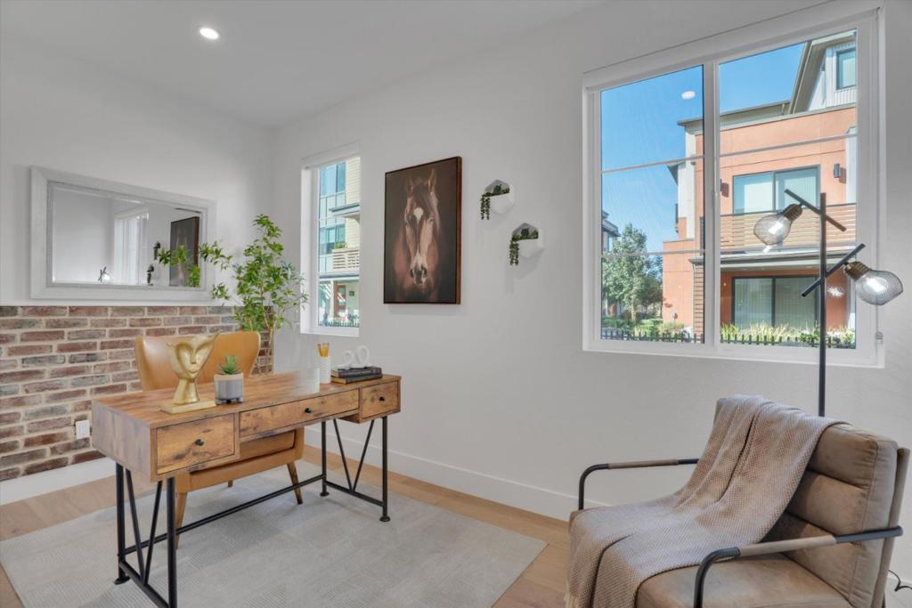 Located within the highly sought-after "Bellaterra by Summerhill" community, this stunning, practically brand-new residence offers the privacy of a single-family home with the low-maintenance lifestyle of a luxury townhome. Uniquely designed as a standalone structure, enjoy the peace, quiet and privacy of having no shared walls. The living area features a true open-concept design, perfect for entertaining. The chef's kitchen features state-of-the-art Bosch stainless steel appliances, a gas range, and a built-in wine/beverage cooler. Centered by an oversized quartz island and breakfast bar, allowing for communal meals. Outside, a private patio oasis perfect for BBQ'ing under the string lights. A smart floor plan includes 2 spacious ensuite bedrooms upstairs. Downstairs, an office/bedroom and half bath ideal for guests or remote work. The lovely primary suite features a chic modern farmhouse slider door, a generous walk-in closet, and a lavish bath with a double vanity. All fixtures are high end and energy-saving, with features including a 220V EV charger, a tankless water heater, and super-insulated walls. Ideally located near major thoroughfares for easy commutes, yet just moments from vibrant downtown Los Gatos. Don't miss this rare opportunity for turnkey luxury in Bellaterra!