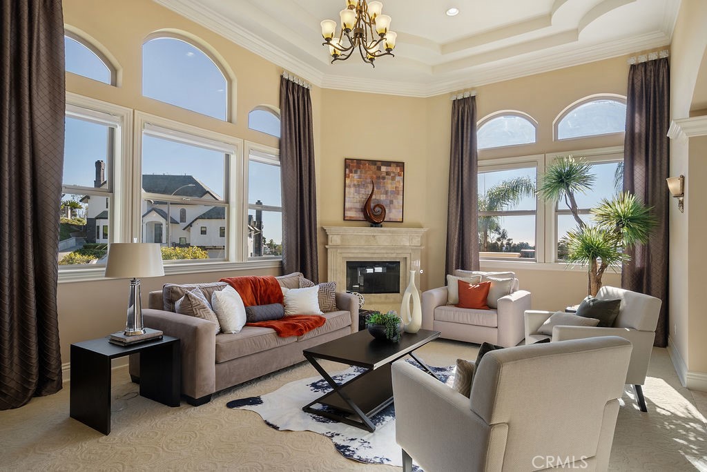 If you’re looking to invest in a stunning luxury home while having complete peace of mind your family is safe and secure while you are gone, look no further. The exclusive Friendly Hill Estates is known for being a prestigious, 24-hour guard gated community. Offering significant privacy and security with controlled access for residents and guests. This impressive custom-built residence offers refined architecture, soaring ceilings, and a thoughtfully designed layout spanning over 5,500 square feet. Boasting 5 spacious bedrooms each complete with in-suite restrooms and walk-in closets, giving everyone in your home the space and privacy they need. As soon as your step into the grand entry you can feel the endless space above you and rooms to get lost in in every direction. The upscale piano room, formal dining room, oversized kitchen and living space all flow together perfectly. Designed for both everyday living and elevated entertaining, the home features multiple fireplaces, expansive balconies, and inspiring views of city lights, rolling hills, and coastal sunsets. It is easy to get lost starring at the ocean and Catalina Island on a clear day. A chef-inspired kitchen anchors the main living area with high-end appliances, custom cabinetry, a massive island with seating, and seamless flow into the surrounding entertaining areas. The primary suite is a large private retreat with a fireplace, spa-like bath, steam shower, walk-in closet, and balcony overlooking the horizon. As you walk the only full 360 degree yard in the neighborhood you can stroll up to your vantage point gazebo and experience a quiet peaceful moment or maybe start your day with some yoga surrounded by nature. An oversized driveway accommodating 10+ vehicles, paired with an expansive courtyard, provides an impressive setting for entertaining and hosting large gatherings. For those seeking a home with a pool, the spacious half-acre lot offers multiple opportunities to design and build a custom pool. The grounds are thoughtfully landscaped with mature fruit trees, terraced gardens, reinforced retaining walls and tranquil outdoor spaces that provide exceptional privacy and a peaceful setting. We all know pictures don’t do justice. Come feel the hottest listing in Friendly Hills for yourself. Let security up front know you’re here to see the masterpiece on Aurora Crest. Start your year with nothing less than the best!