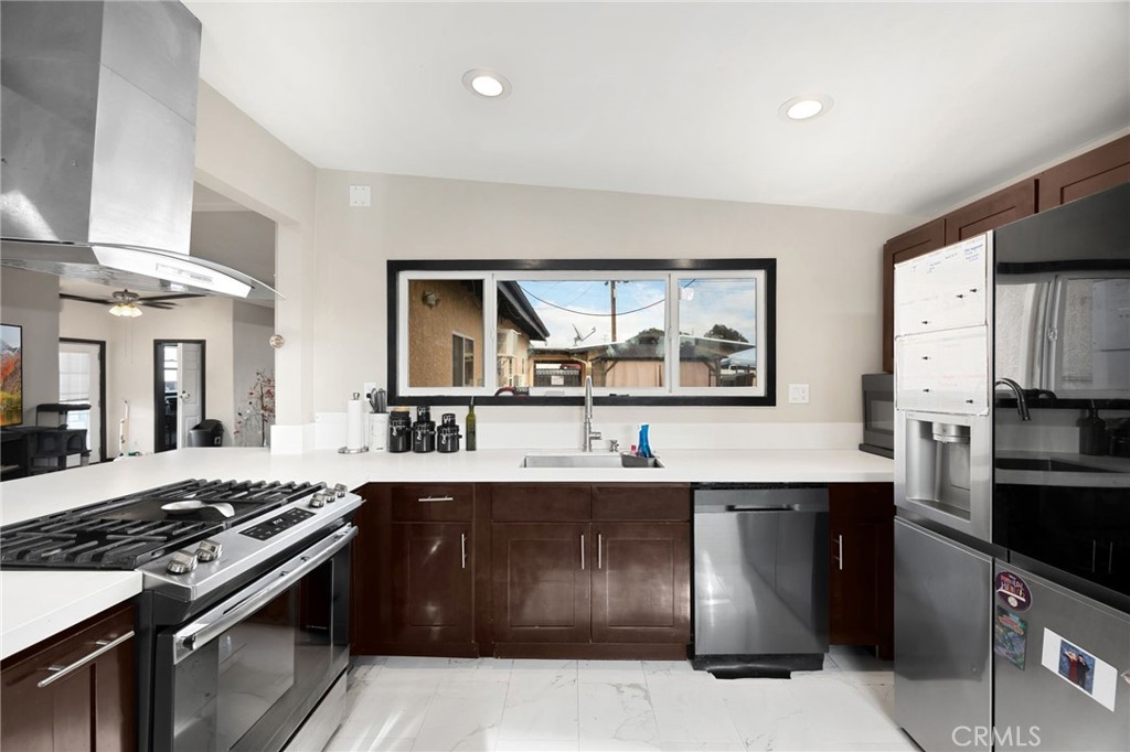 Welcome to this beautifully maintained single-family home in a desirable community of Whittier, featuring 4 spacious bedrooms and 2 bathrooms. With a tax record showing 1,564 square feet and recently added permitted square footage totaling 1,917 square feet, this home offers plenty of room for family living. Step inside to discover a large living room adorned with vaulted ceilings, creating an airy and inviting atmosphere. The added fourth bedroom and office space provides versatility for your family's needs. Enjoy outdoor entertaining on the covered back patio while taking a soak in the beautifully kept vinyl pool. The upgraded kitchen boasts exquisite quartz countertops and rich hardwood cabinets, complemented by luxury vinyl flooring and cozy carpet throughout. Other notable features include solar panels for energy efficiency, a newer AC condenser, furnace, dual-pane windows, and a roof that has been replaced within the last 10 years, ensuring peace of mind and longevity. This traditional single-story home retains its charm with original hardwood floors in select areas. Conveniently located less than a quarter mile from Leffingwell Ranch Park, you'll have access to new pickleball courts, tennis courts, and playgrounds. Explore the vibrant uptown Whittier, just minutes away, where you’ll find unique boutiques and delightful restaurants. Plus, Whittwood Town Center is nearby, offering a variety of shopping, dining, and entertainment options. Don’t miss the opportunity to make this charming home yours!