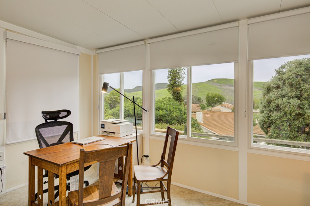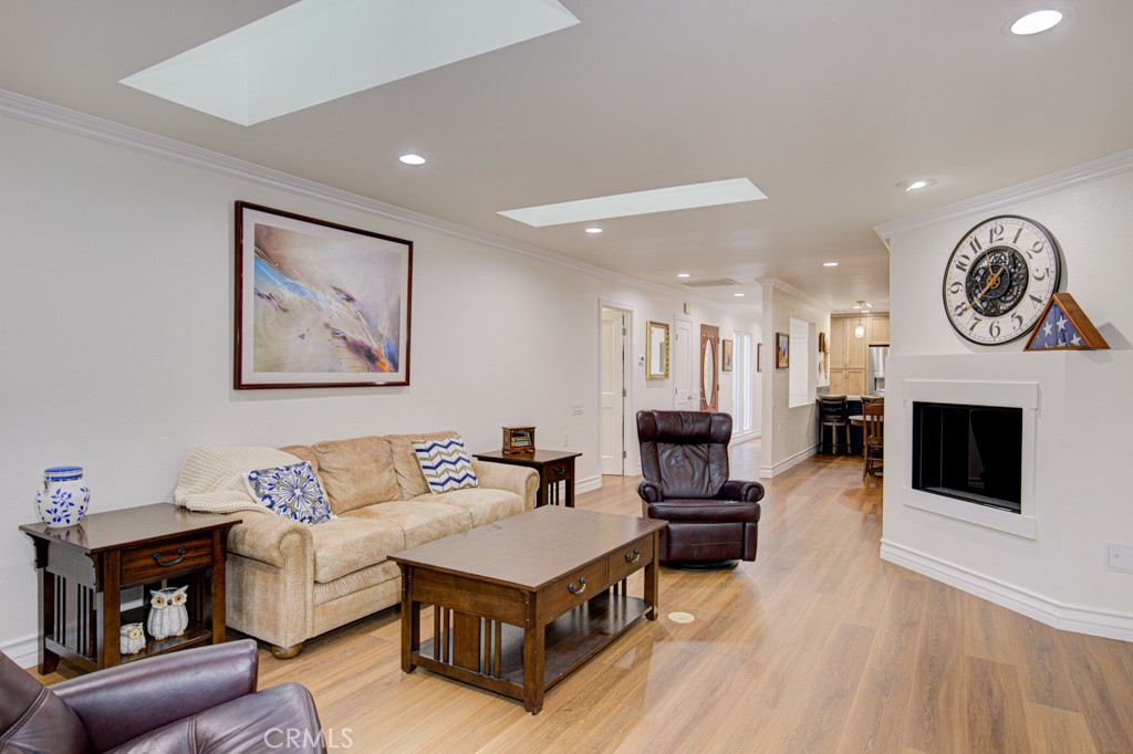 Enjoy beautiful views from this single-level residence nestled on a serene cul-de-sac in prestigious Gate 11 of Laguna Woods Village - the premier 55+ community just minutes from Laguna Beach. This remodeled 2 bedroom, 2 bathroom residence offers approximately 1,578 square feet of thoughtfully designed living space, plus an additional enclosed sunroom of about 200 square feet that creates a light-filled extension of the main living area and a perfect spot to enjoy morning coffee or evening relaxation. From the back of the home, picturesque hillside views provide a tranquil backdrop, while the spacious front courtyard offers a welcoming and private outdoor area ideal for entertaining or a quiet retreat.? Inside, the home has been transformed and features two spacious primary bedrooms, each with its own en-suite bathroom, providing exceptional comfort and privacy for owners and guests alike. The open-concept kitchen is the centerpiece of the living space, showcasing stainless steel appliances including an induction cooktop, new custom KraftMaid cabinetry with soft-close drawers and doors, a pantry with roll-out shelves, and multiple pull-out drawers that maximize storage and convenience. New custom closets in the bedrooms add to the organized feel of the home, while the full-sized washer and dryer are conveniently located inside enhancing everyday ease of living. Modern upgrades are evident throughout, including recessed lighting, ceiling fans, and skylights with remote controlled shades that bring in abundant natural light. An inviting electric fireplace adds warmth and ambiance to the main living area, making it a cozy gathering space in cooler months. Newly installed SOLAR PANELS with backup battery offer energy efficiency and peace of mind, helping to manage utility costs. Also, another great upgrade - new plumbing throughout. An attached two-car garage provides direct access and generous storage options. Beyond the home itself, residents enjoy an unparalleled array of resort-style amenities within Laguna Woods Village, including a 27-hole golf course, pickleball, 7 clubhouses, 5 pools, 3 fitness centers, social clubs, and year-round activities, all set amidst rolling hills and manicured grounds in an exclusive guard-gated environment. This residence blends refined design, modern comfort, and a coveted location into a truly luxurious offering in one of Southern California’s most desirable 55+ communities. Come and see this move-in ready home.
